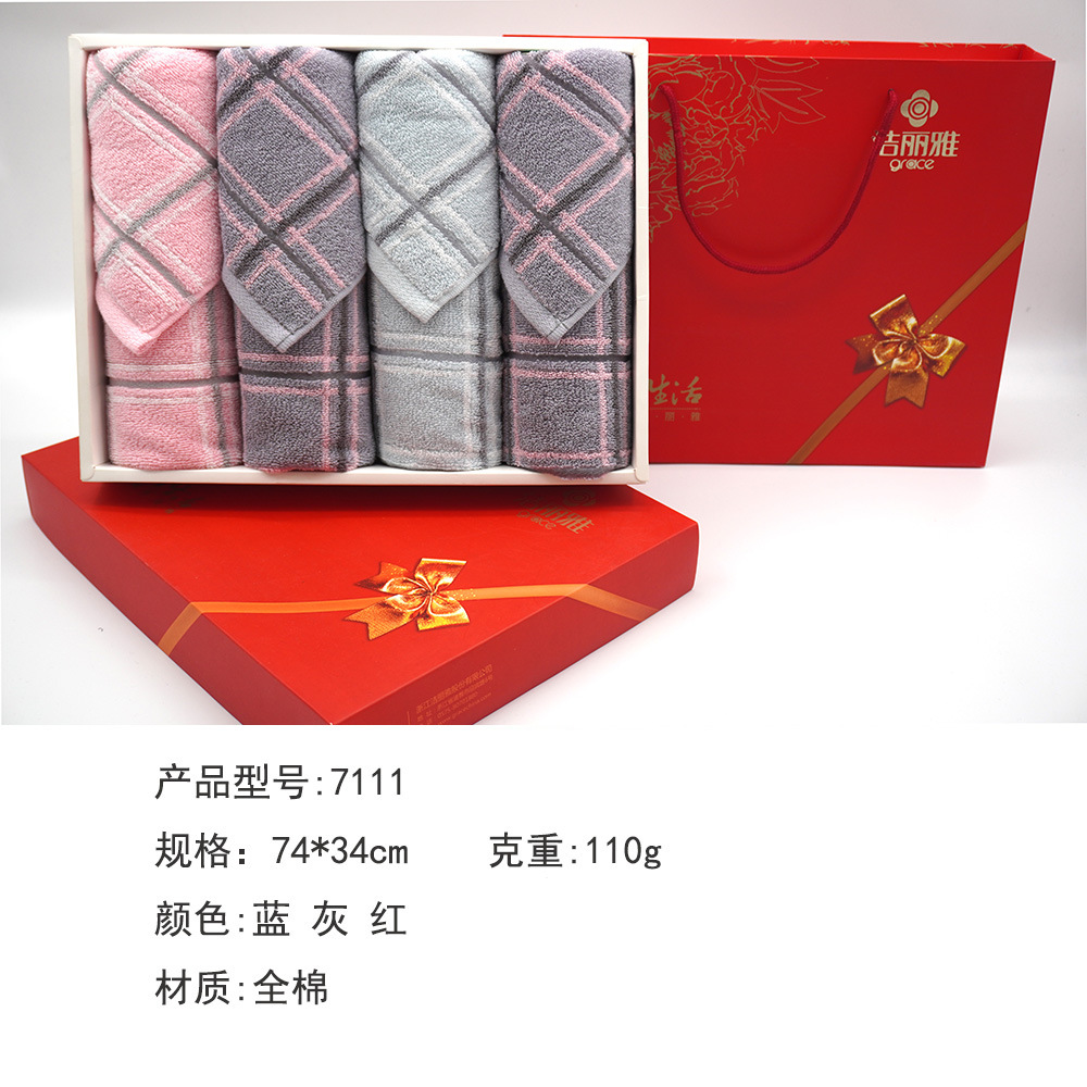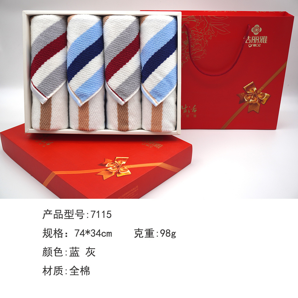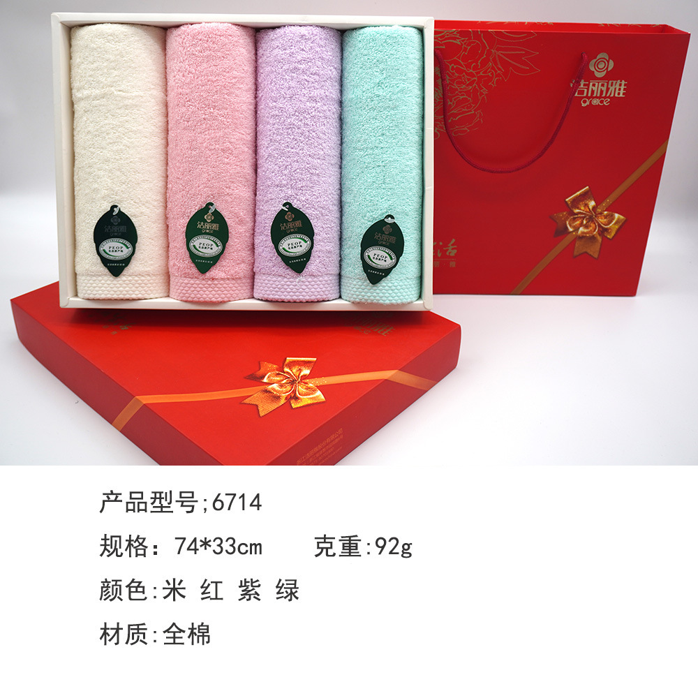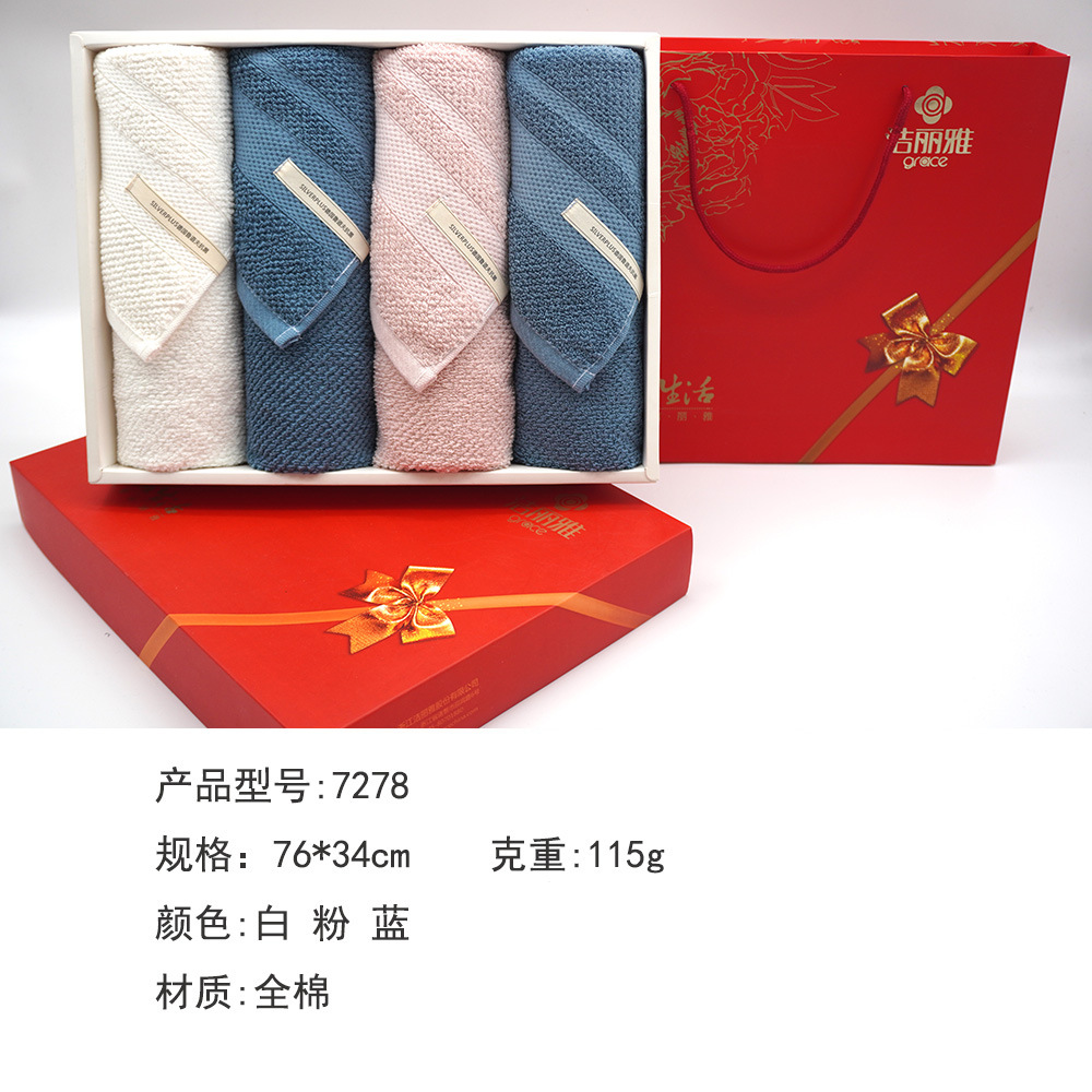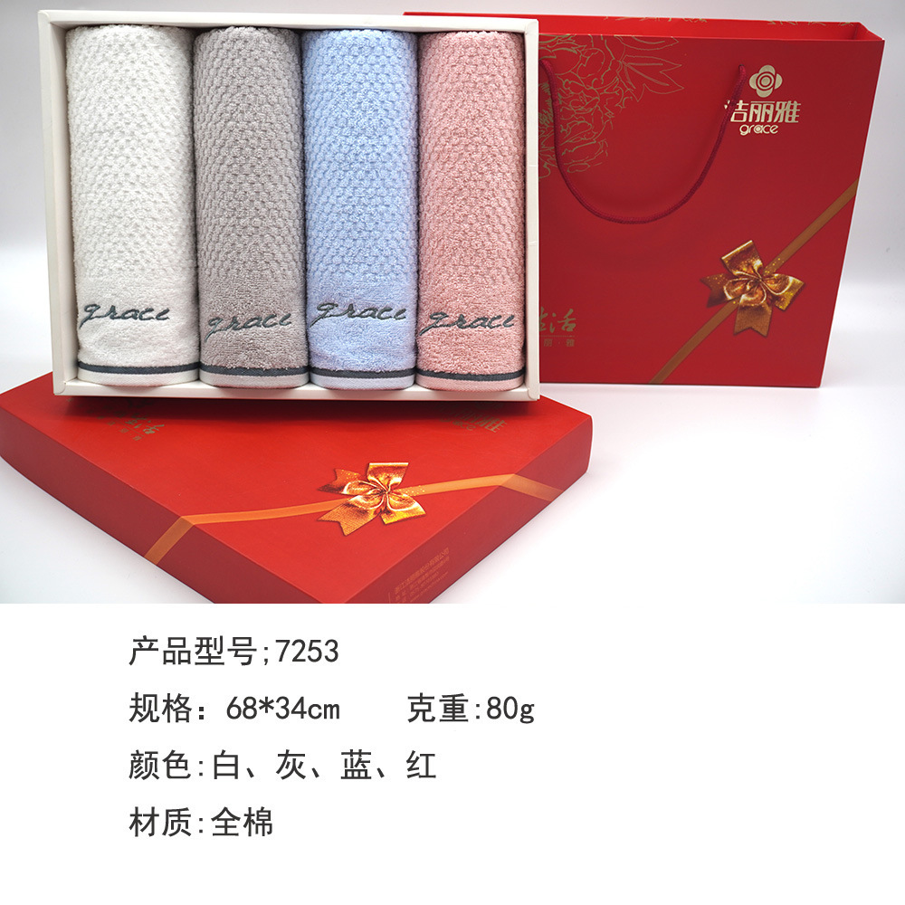 Jieliya 수건 축제 4 팩 선물 상자 순면 수건 선물 상자 자수 로고 Jieliya 수건 선물 상자