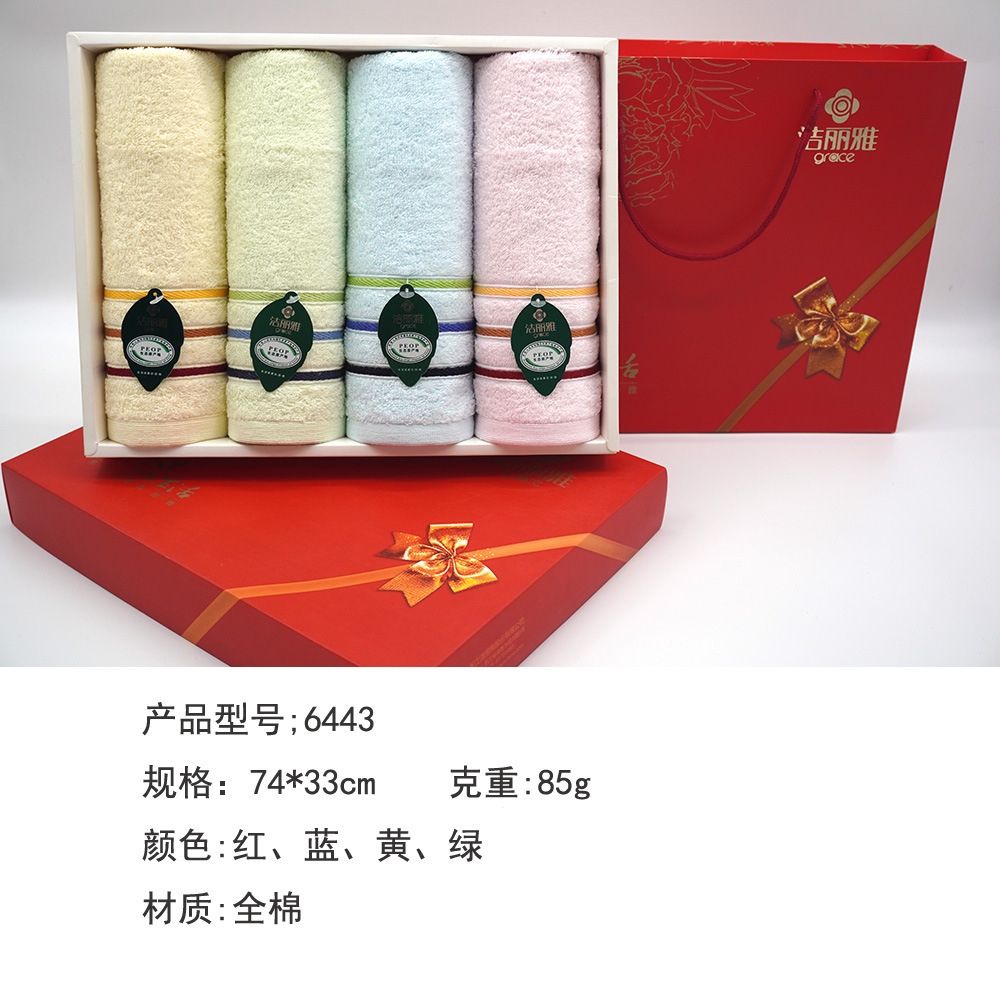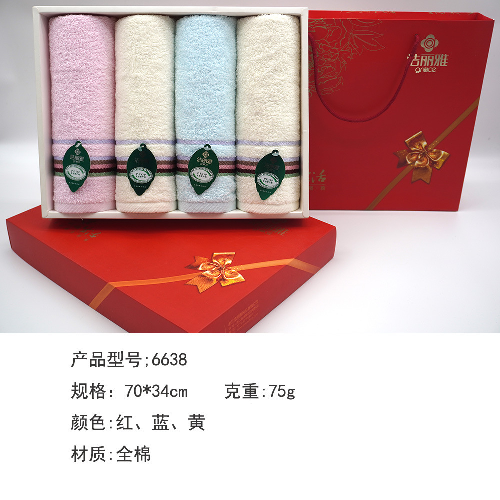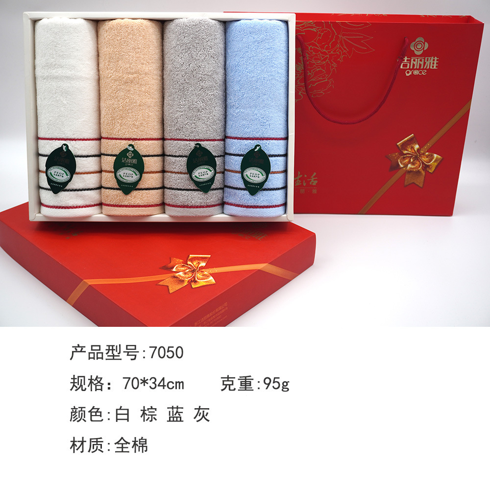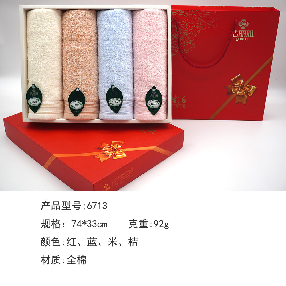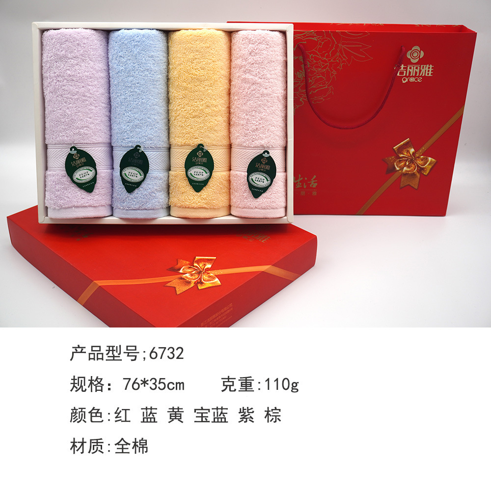 Jieliya 수건 축제 4 팩 선물 상자 순면 수건 선물 상자 자수 로고 Jieliya 수건 선물 상자