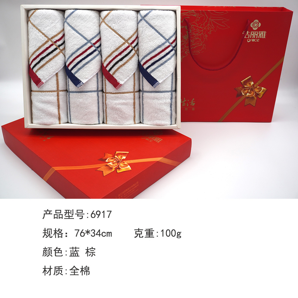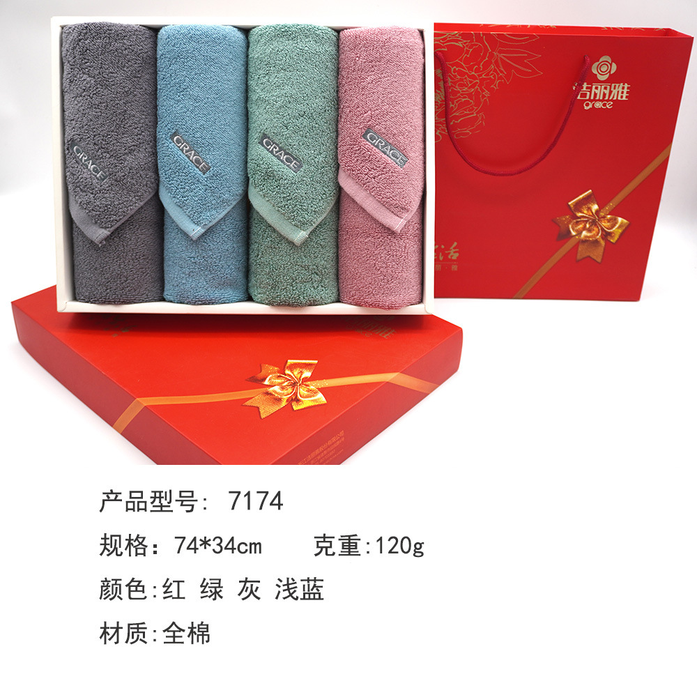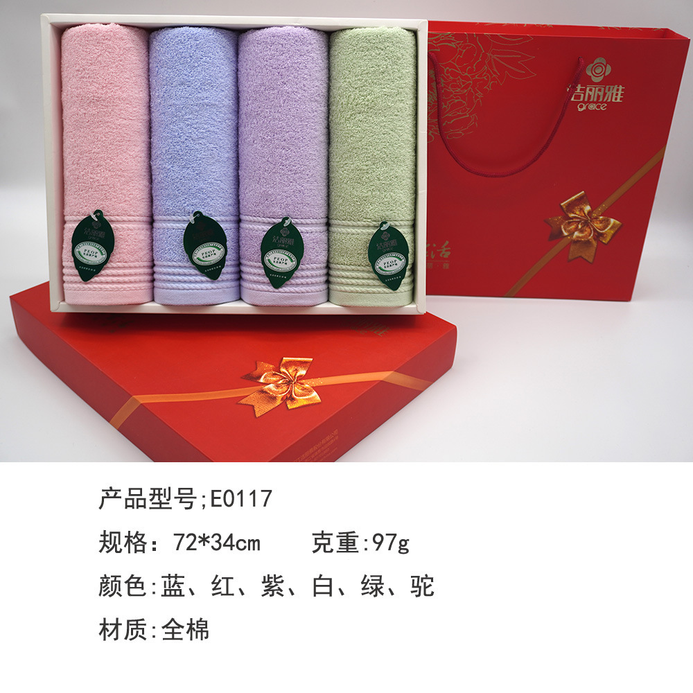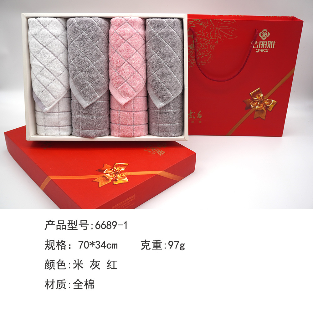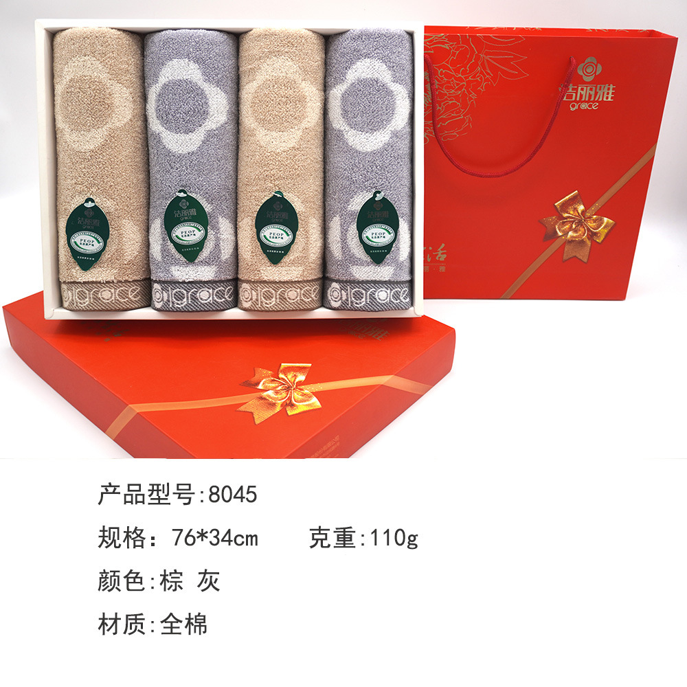 Jieliya 수건 축제 4 팩 선물 상자 순면 수건 선물 상자 자수 로고 Jieliya 수건 선물 상자