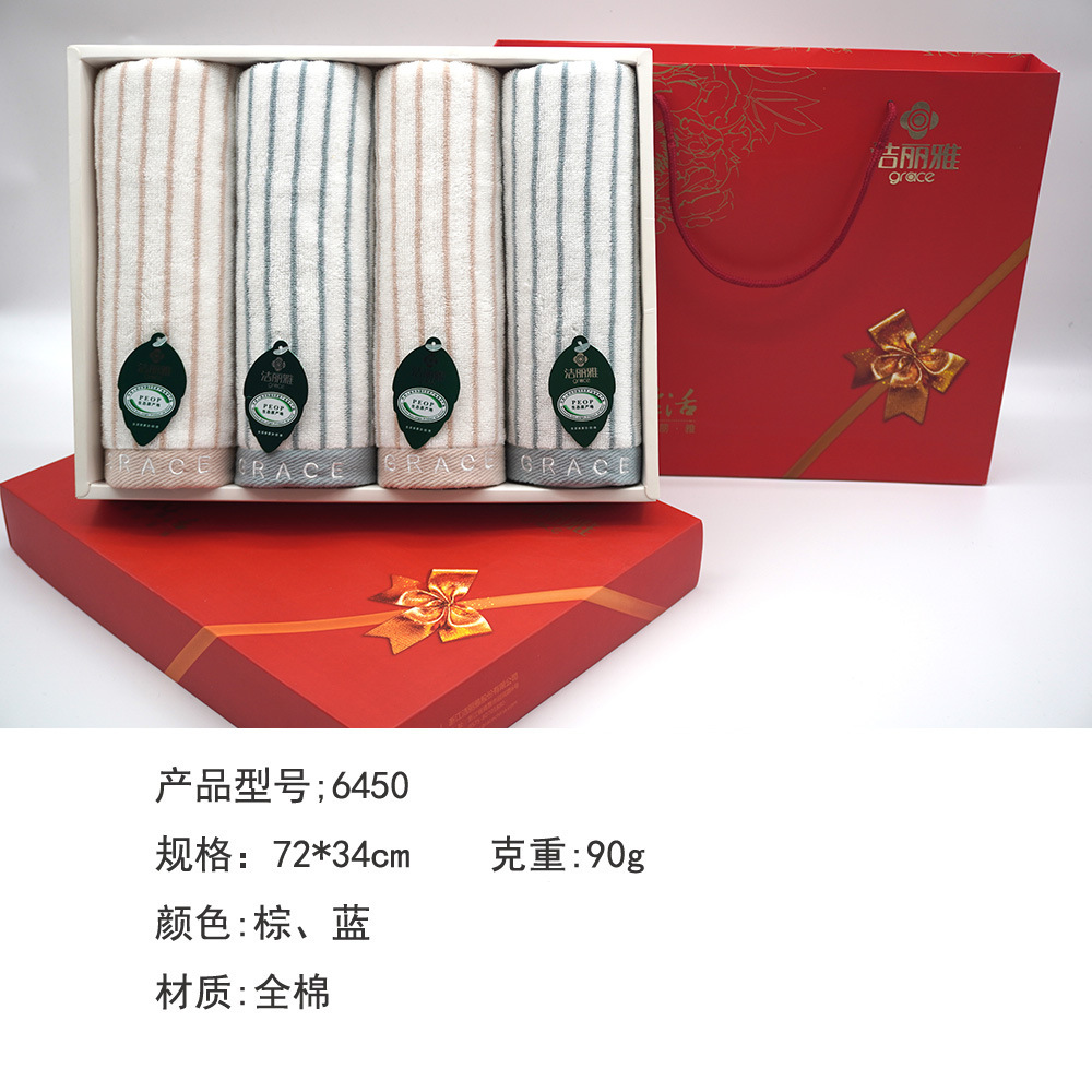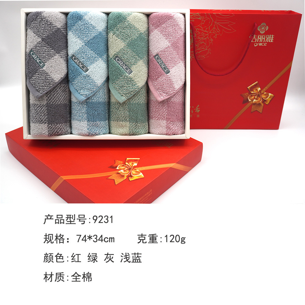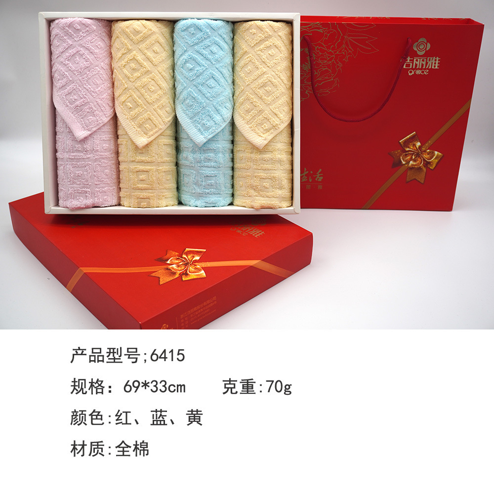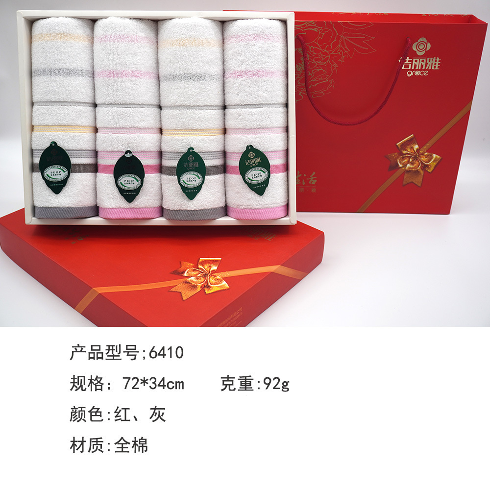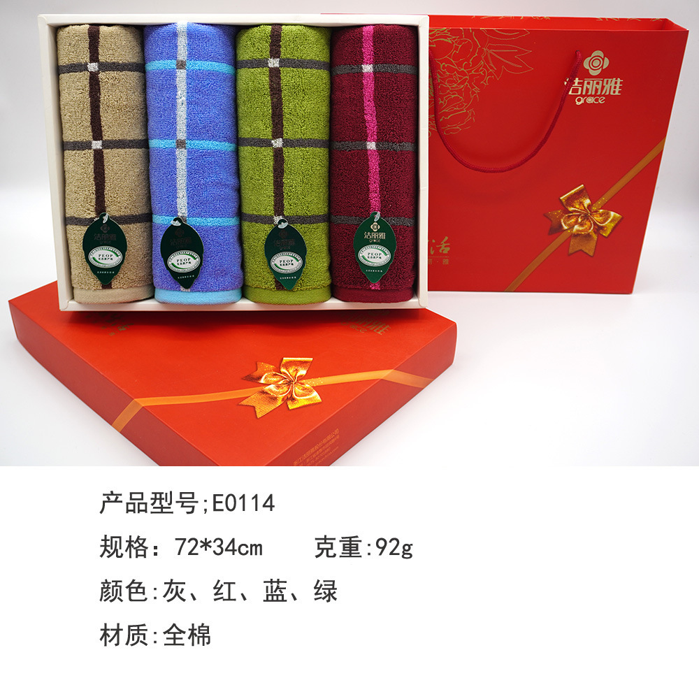 Jieliya 수건 축제 4 팩 선물 상자 순면 수건 선물 상자 자수 로고 Jieliya 수건 선물 상자