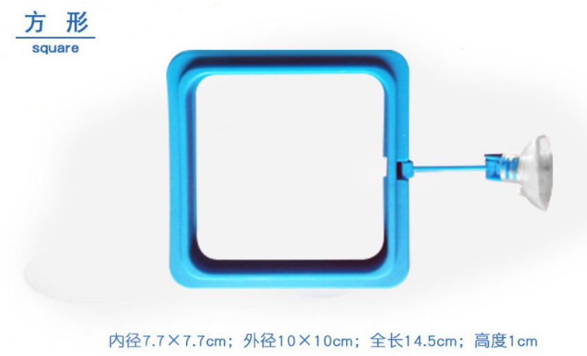 本投食圈使用于上浮性鱼粮,可增加鱼儿摄食的观赏性,有圆形及方形两种款式可供选择,含超强吸力吸盘可固定在缸壁上!