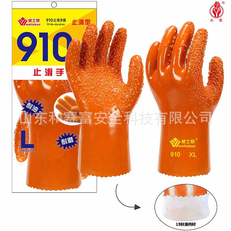 Chunlei Waibang 910 미끄럼 방지 오일-알칼리 저항성 딥 플라스틱 면 울 천 라이닝 미끄럼 방지 산업 노동 장갑스토어 가기
