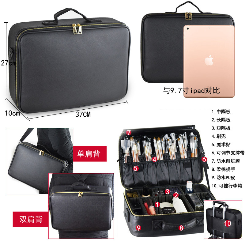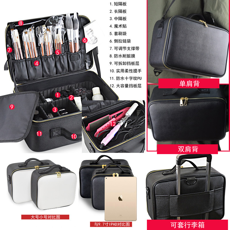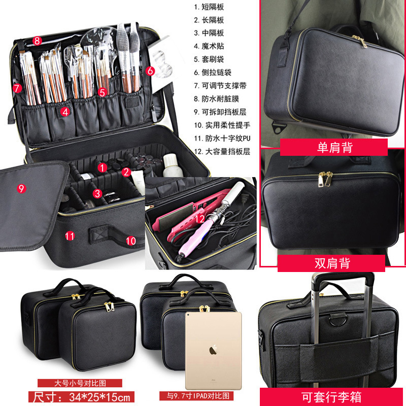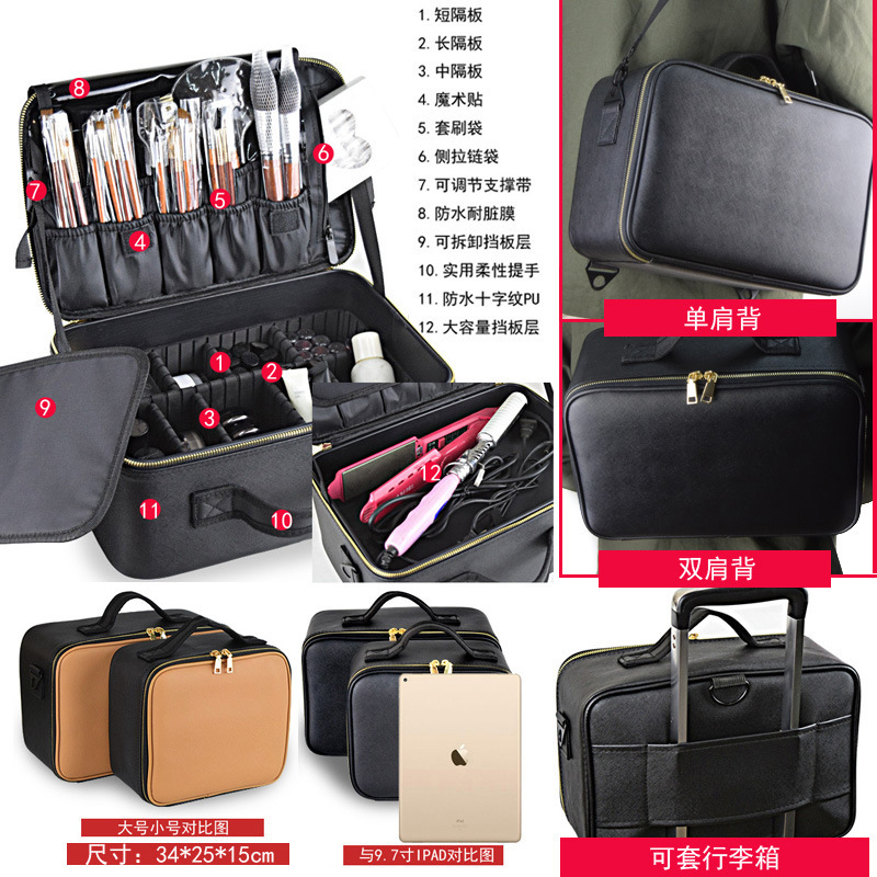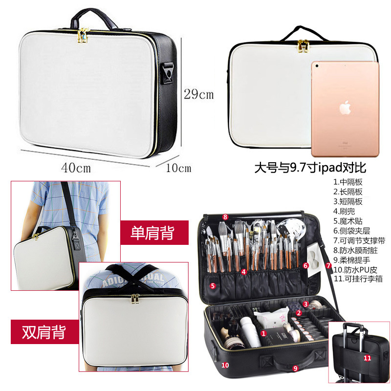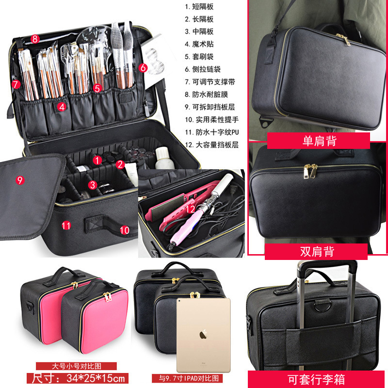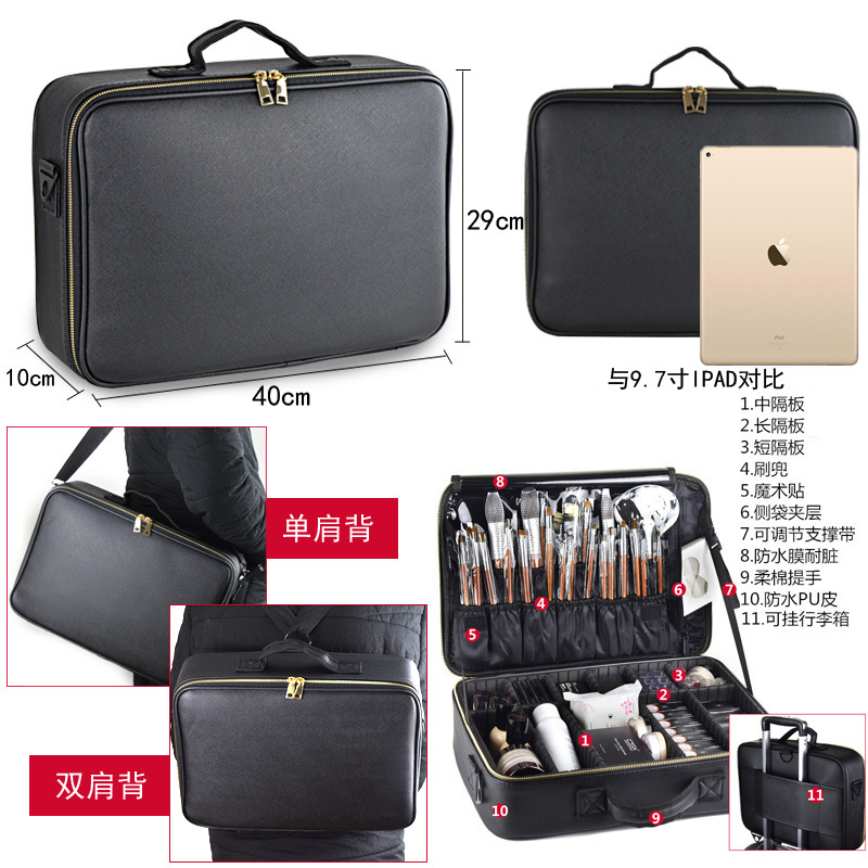 새로운 간단한 휴대용 파티션 화장품 가방 보관 가방 다층 대형 메이크업 아티스트 메이크업 가방 문신 가방 대외 무역스토어 가기