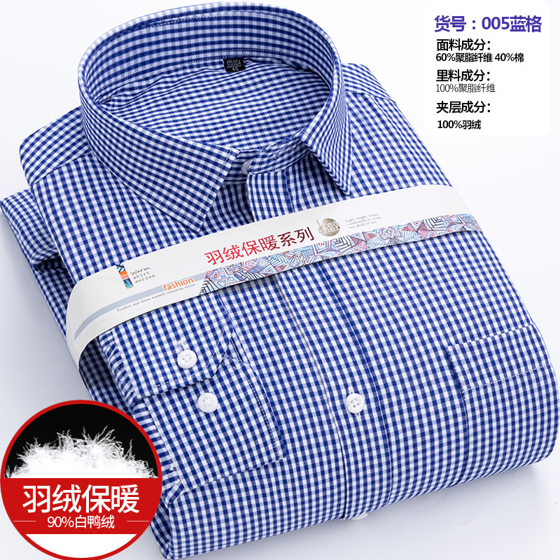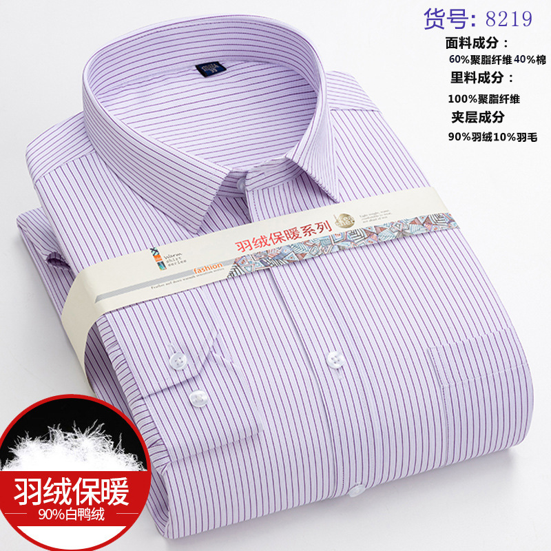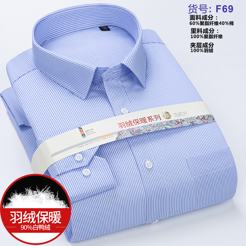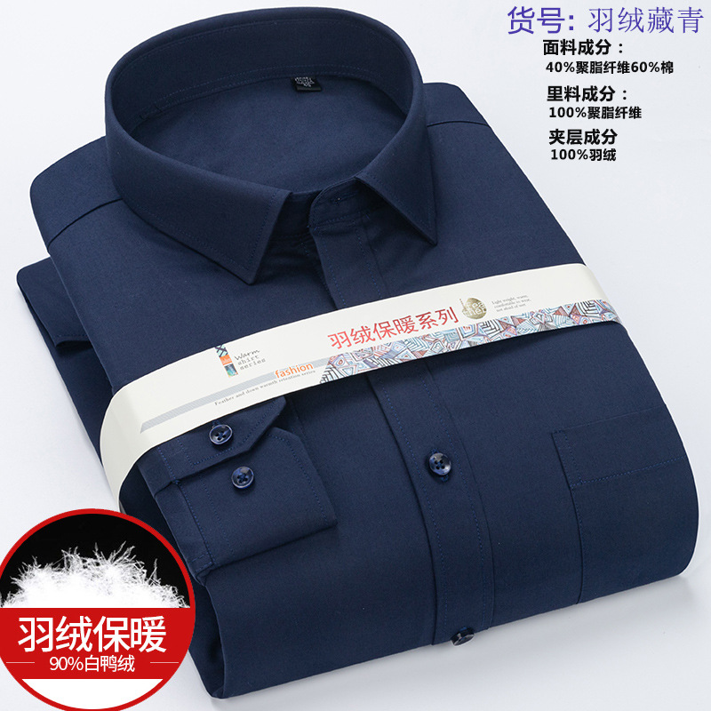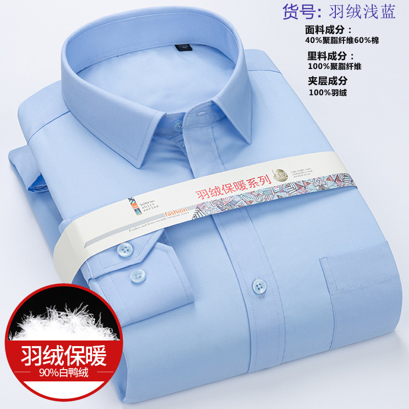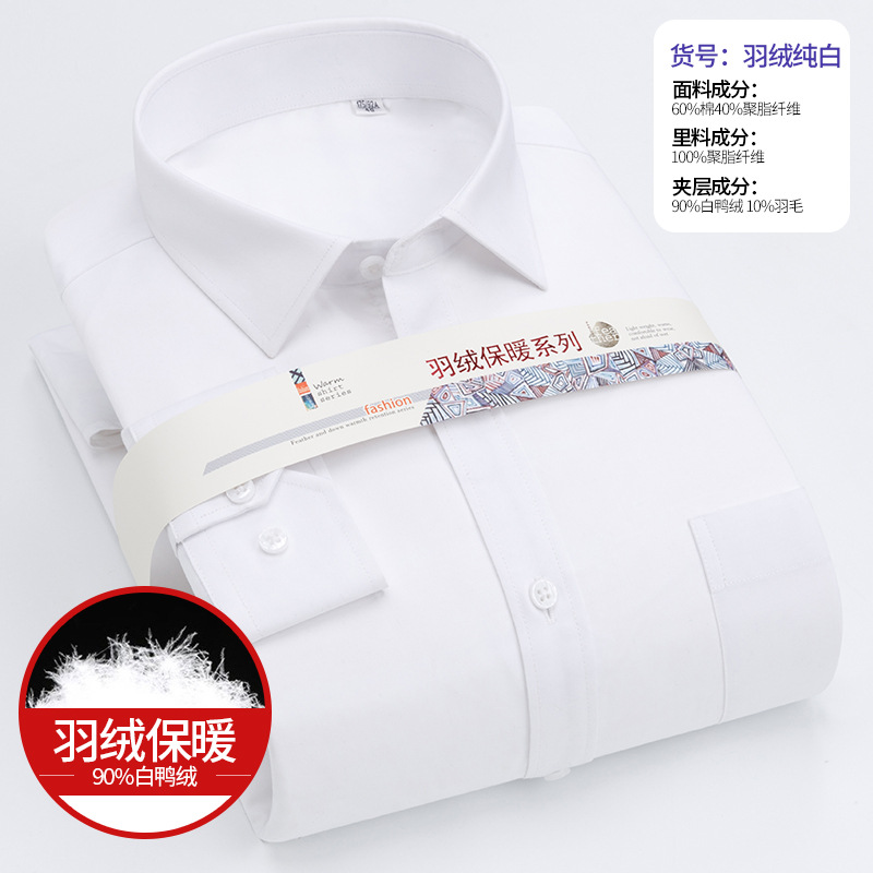 겨울 새로운 다운 셔츠 남자의 비즈니스 캐주얼 화이트 오리 다운 셔츠 남자의 따뜻한 셔츠 기모 두껍게