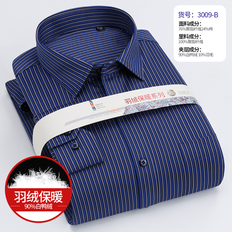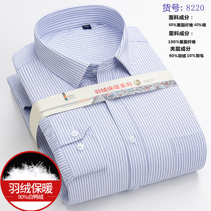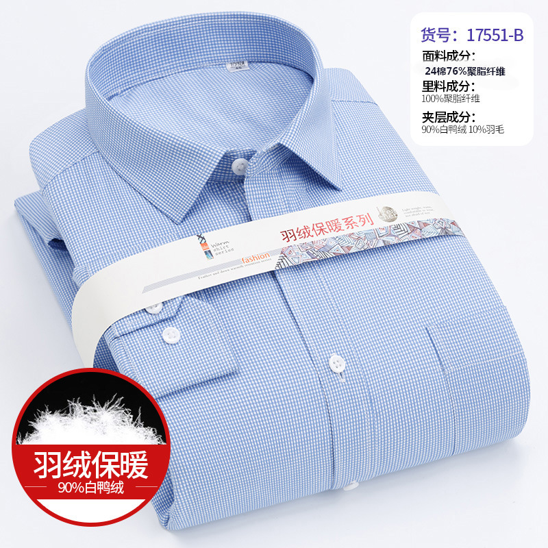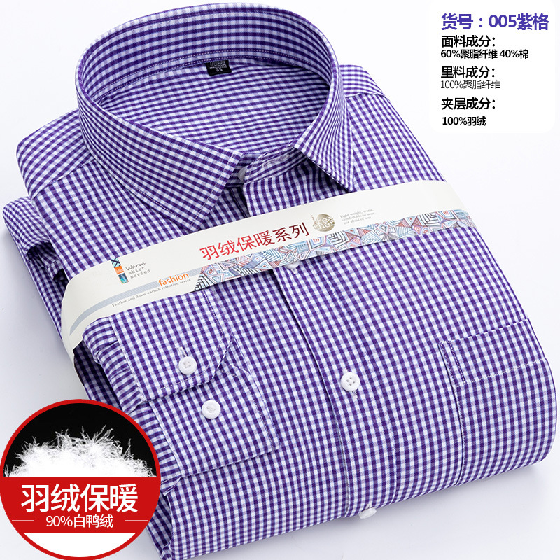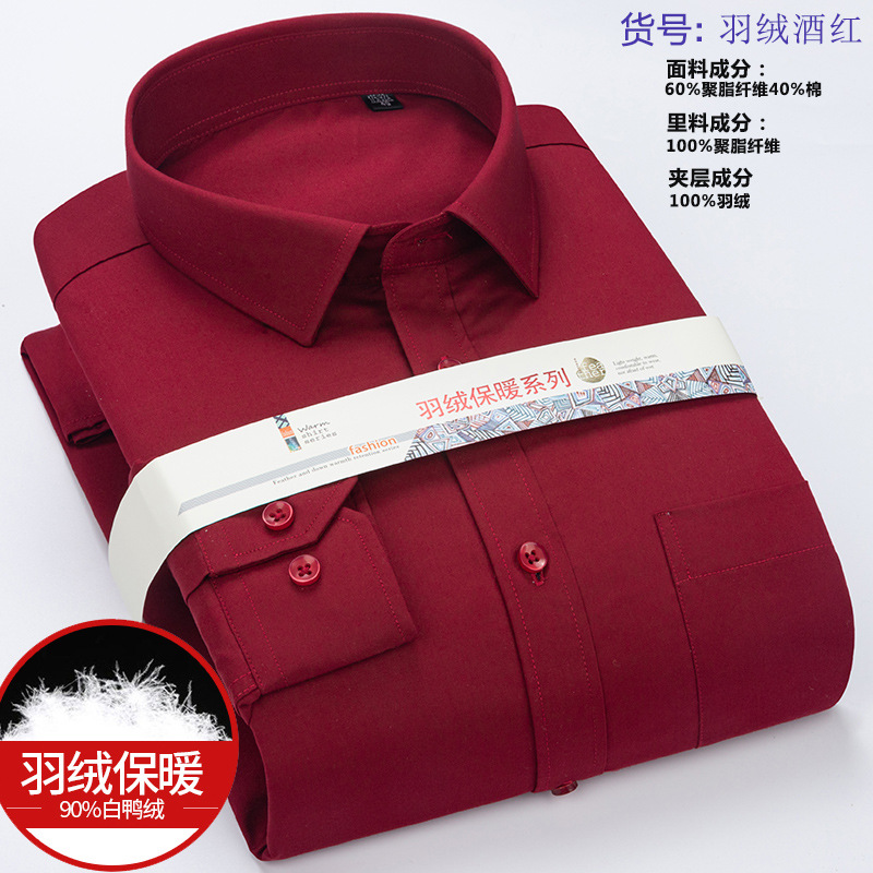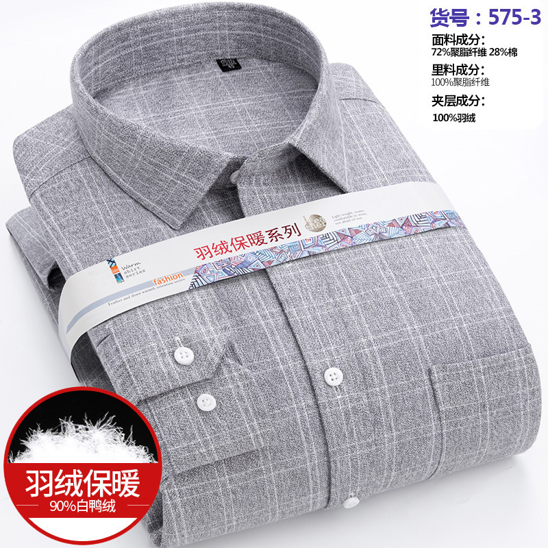 겨울 새로운 다운 셔츠 남자의 비즈니스 캐주얼 화이트 오리 다운 셔츠 남자의 따뜻한 셔츠 기모 두껍게