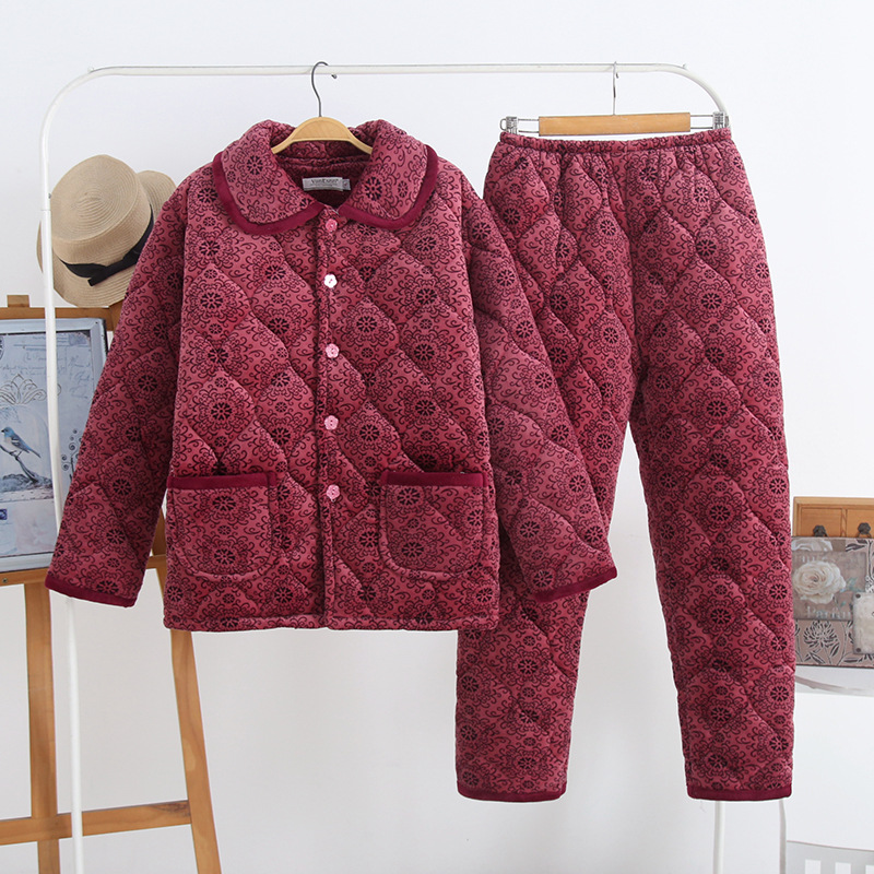 여성용 겨울 잠옷 3 층 패딩 코튼 플란넬 따뜻한 벨벳 산호 양털면 패딩 재킷