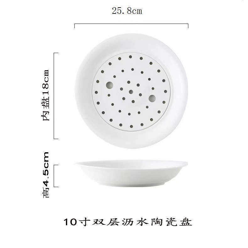 Underglaze 컬러 드레인 만두 플레이트 가정용 화이트 플레이트 Ins 세라믹 라운드 10 인치 식기 플레이트 다공성 스팀 플레이트스토어 가기