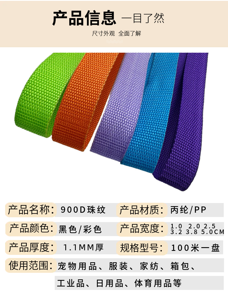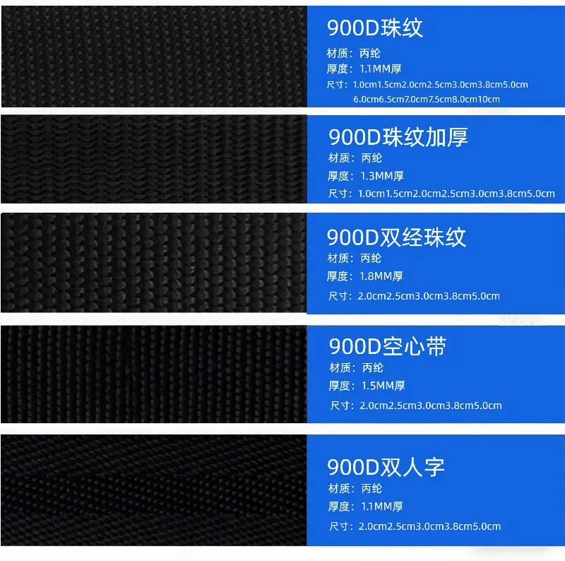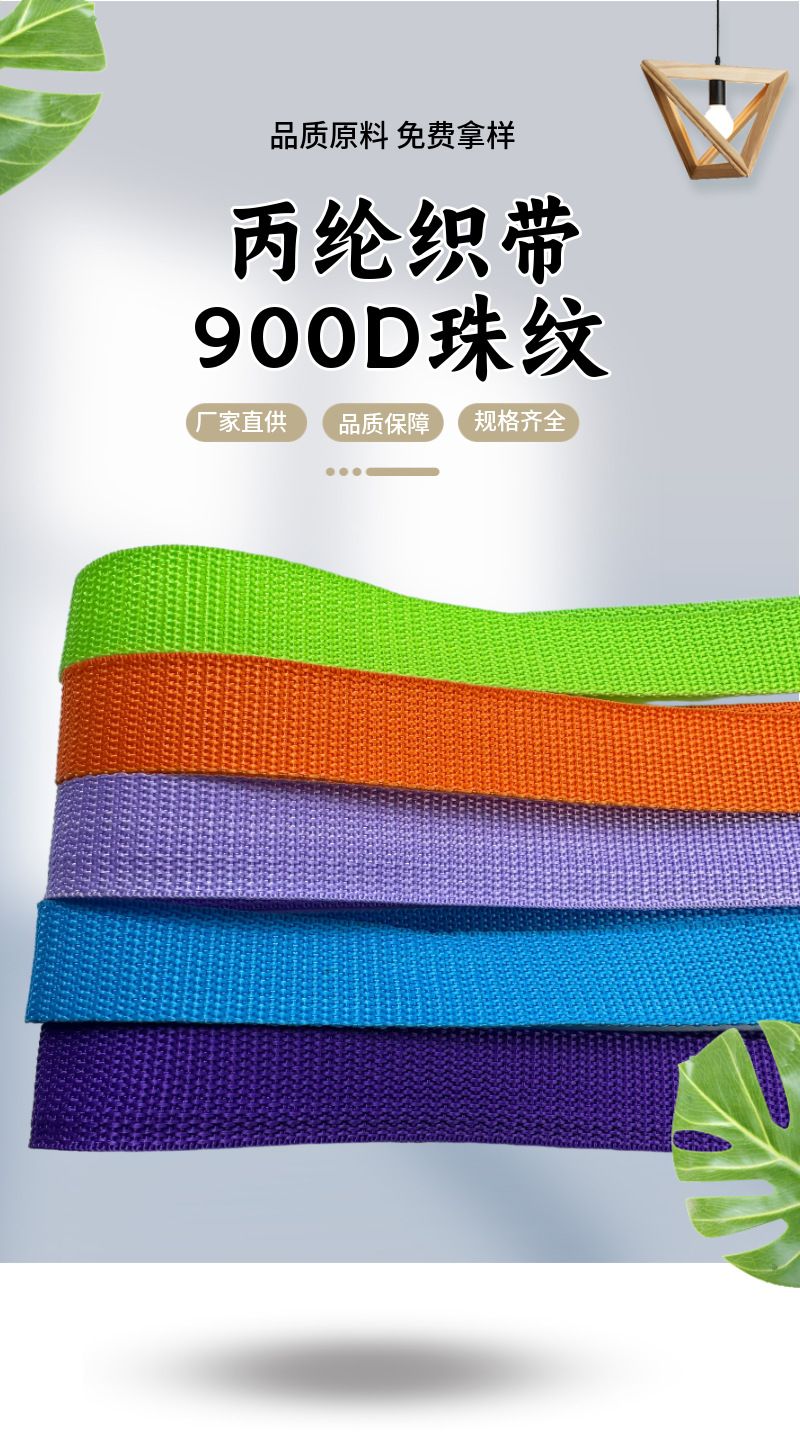 폴리 프로필렌 웨빙 대형 재고 공급 900D 폴리 프로필렌 비드 벨트 능선 잠금 에지 벨트