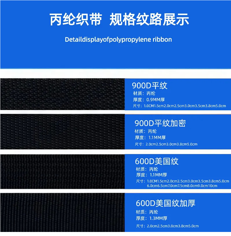 폴리 프로필렌 웨빙 대형 재고 공급 900D 폴리 프로필렌 비드 벨트 능선 잠금 에지 벨트스토어 가기
