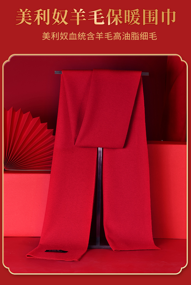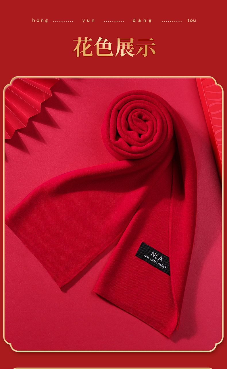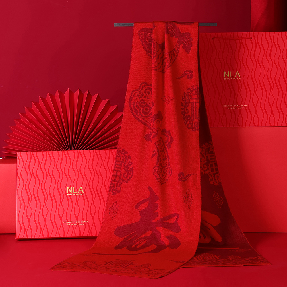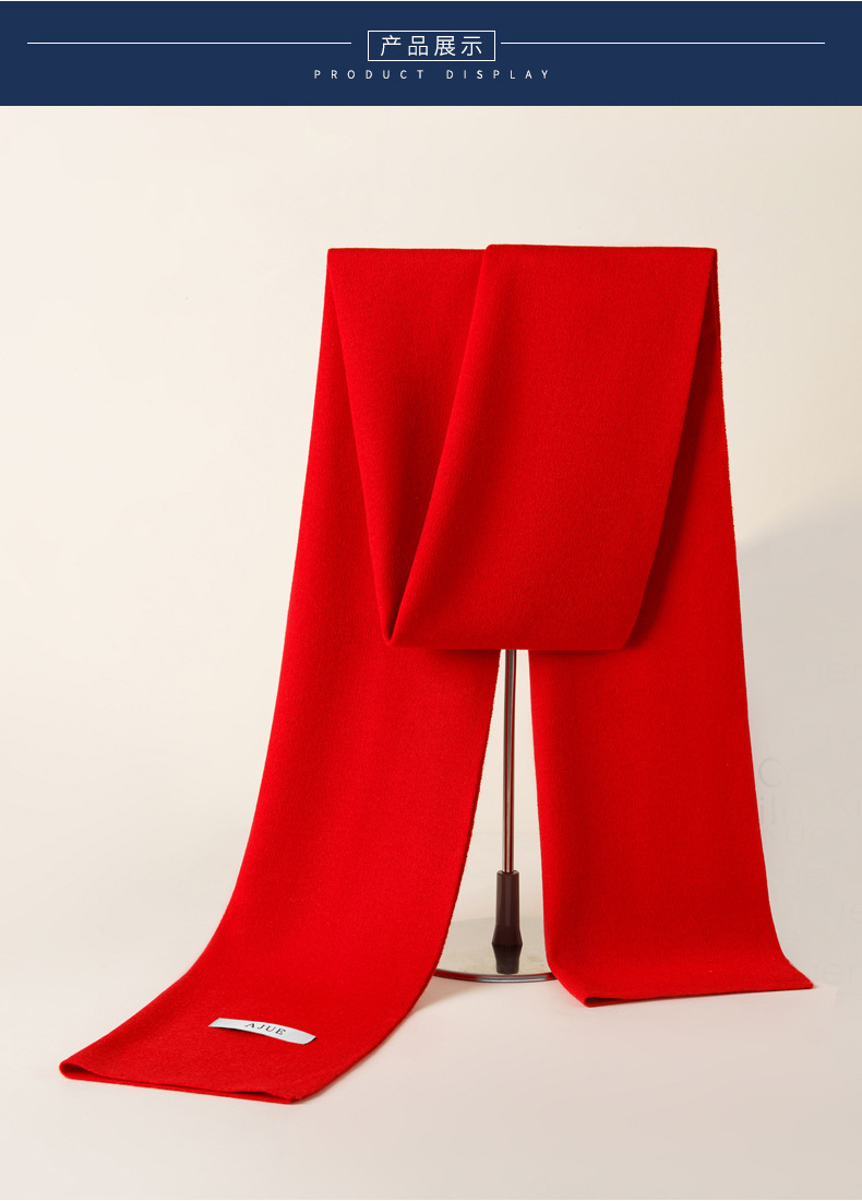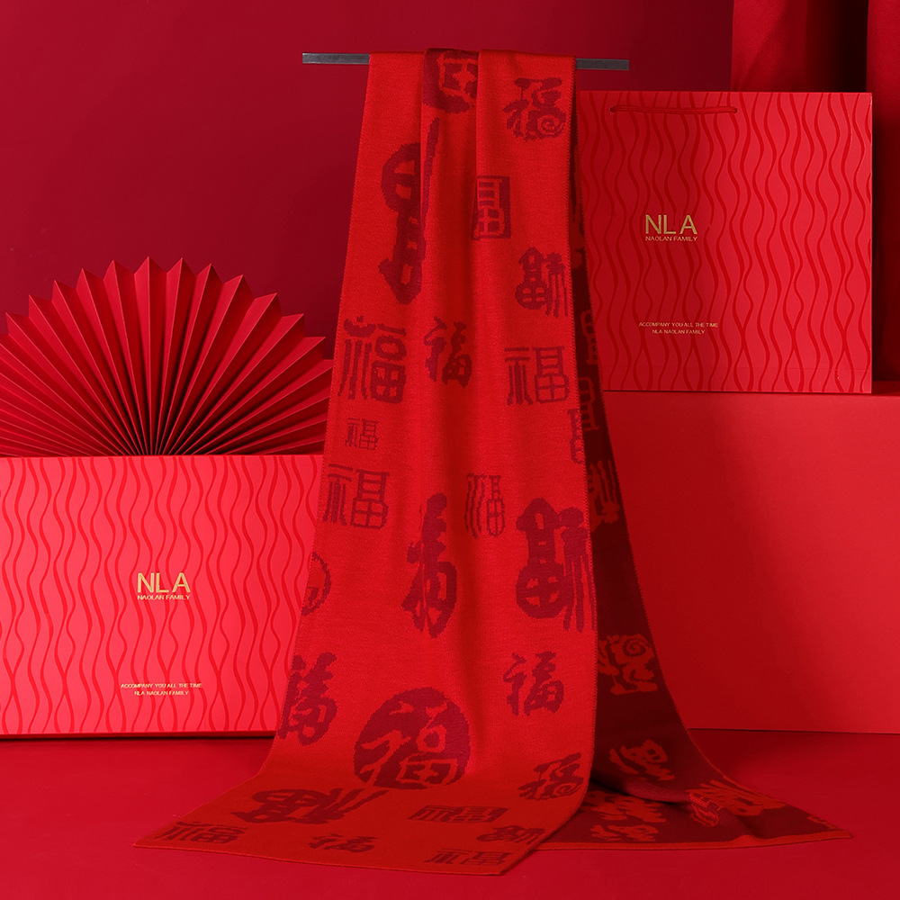 본년용 빨간색 울 스카프, 남녀공용 자수 로고, 레드 연말연회 스카프, 중국 레드 프린팅 맞춤 도매스토어 가기