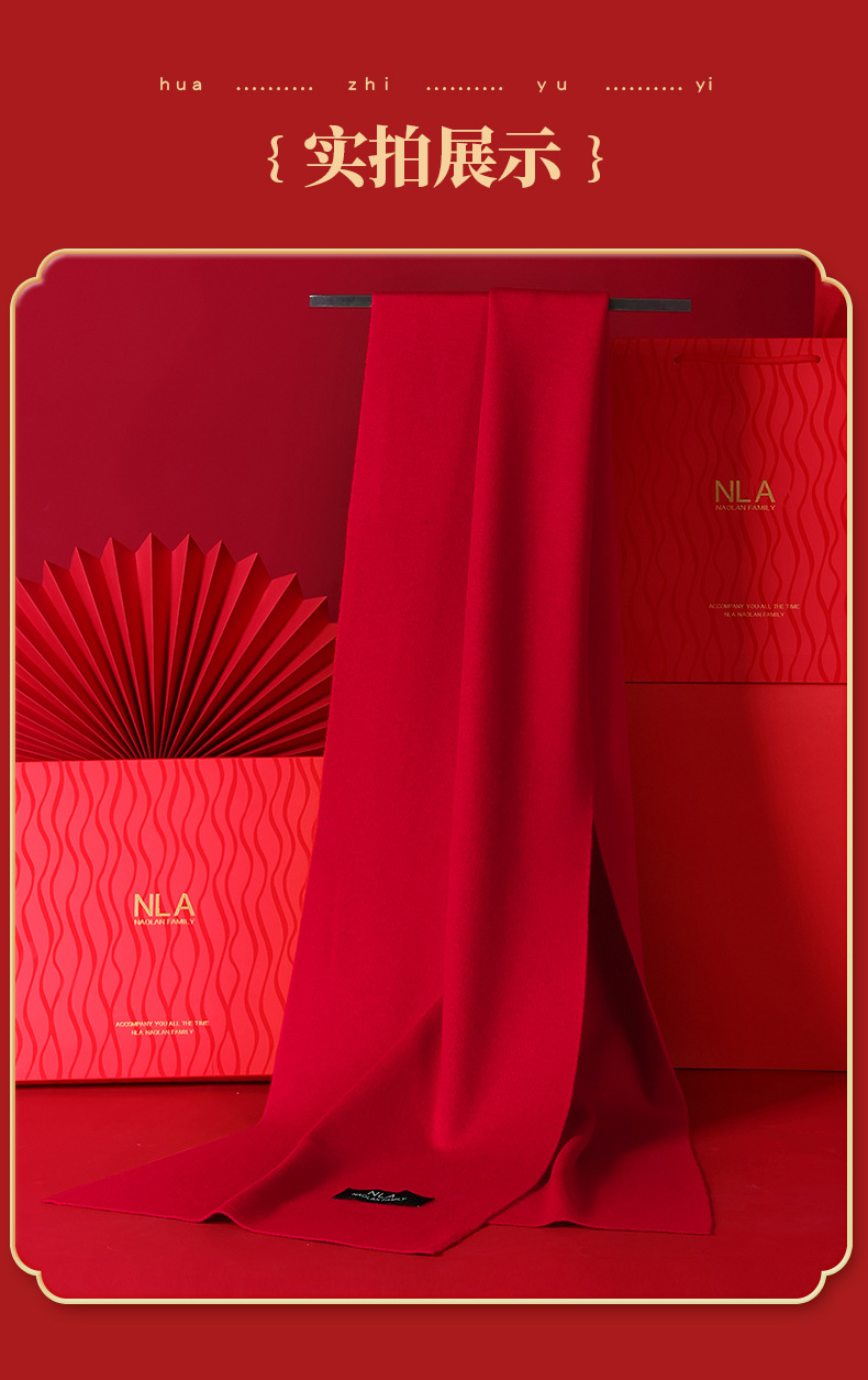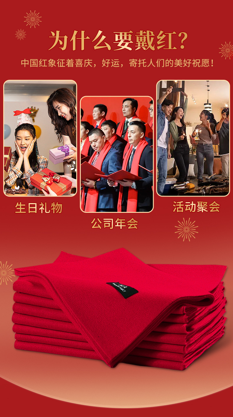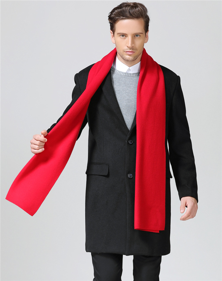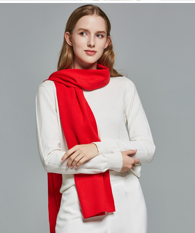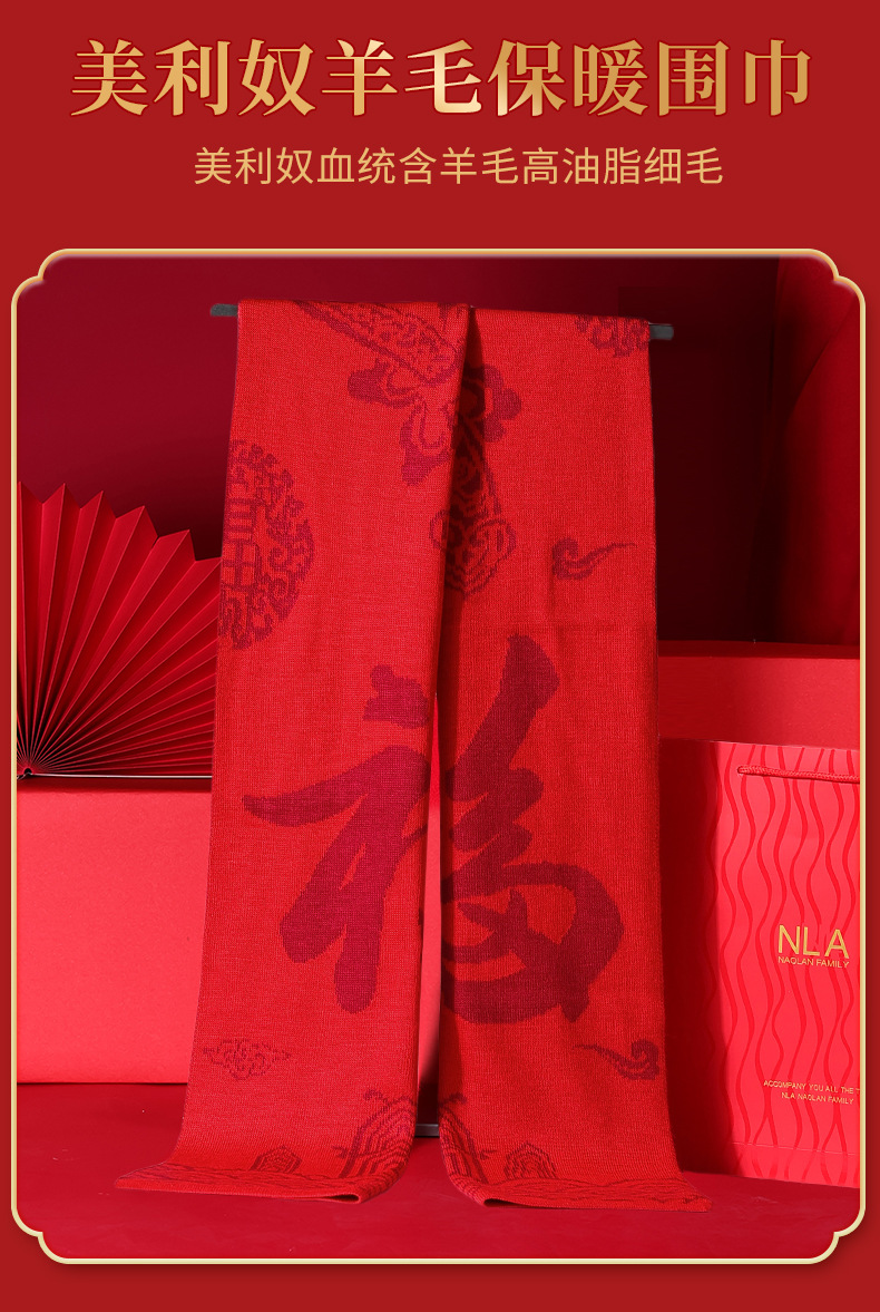 본년용 빨간색 울 스카프, 남녀공용 자수 로고, 레드 연말연회 스카프, 중국 레드 프린팅 맞춤 도매스토어 가기