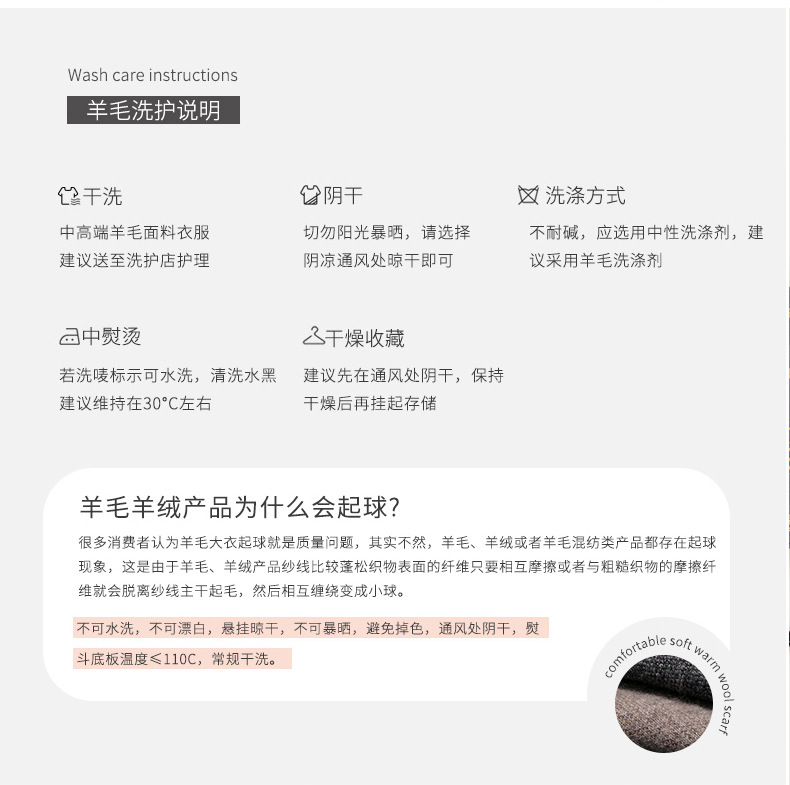 本厂可来样定制、贴牌加工,刺绣LOGO。目前主要生产材质有(腈纶、6羊毛、30羊毛及纯羊毛),本厂资源充足出货快、质量优、价格低,欢迎新老顾客选购。本店所报价格均为税前价格,不含标及礼盒,如需开票、礼盒请联系客服。(注:定制产品不支持7天无理由退换货)