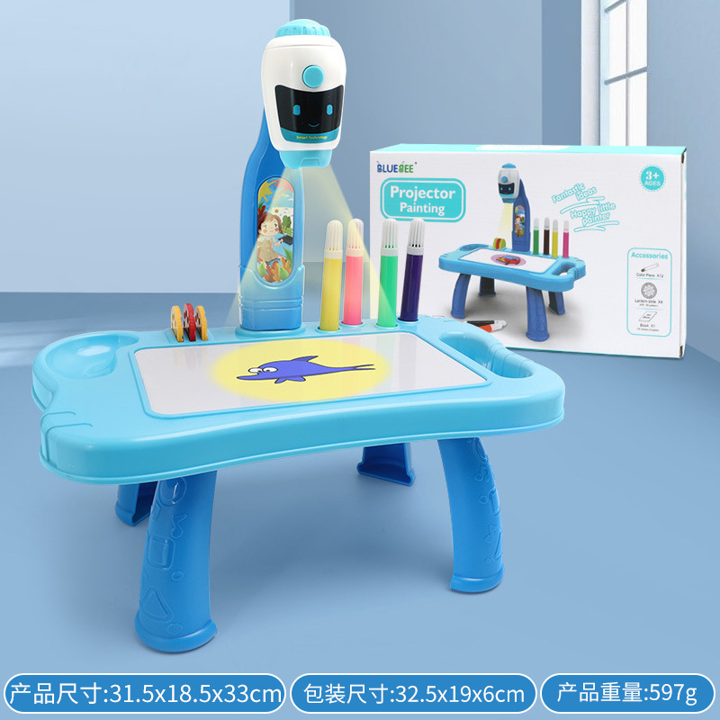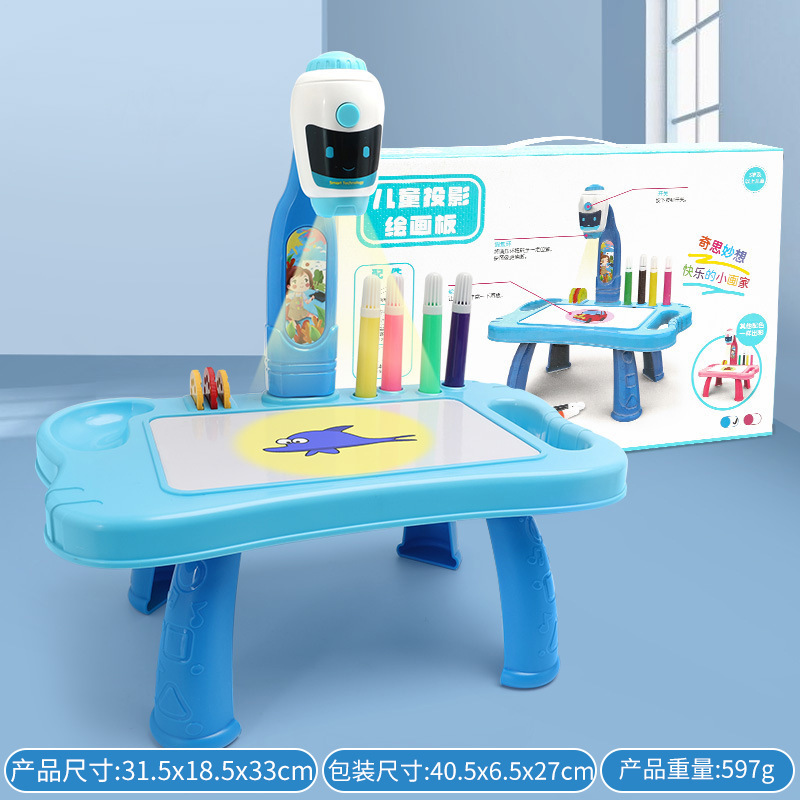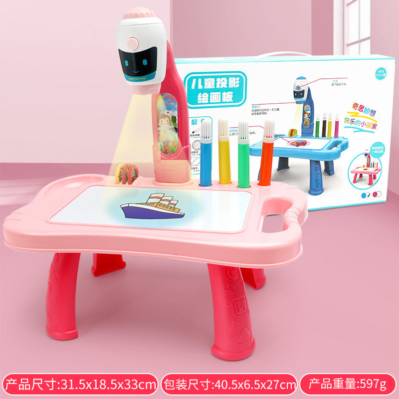 | 充电版投影画板【电商盒】 | 33.5*20.5*7 | 448g | 粉色、蓝色 | 共配置32个图案(4个投影轮,每个有8个图案)、一本小白本、12色的彩色笔、1条充电线 | 内置充电电池 | |||