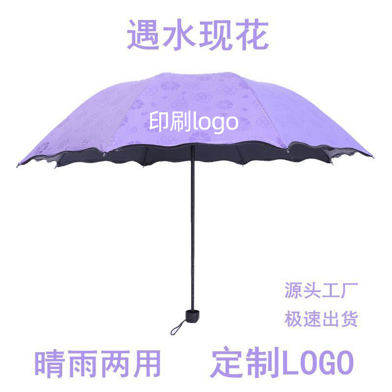 물에 닿으면 꽃이 피고 색이 변하는 블랙 글로시 자외선 차단 양산 70% off단 양산, 햇빛 가리개, 비가 오는 날도 사용 가능, 도매 광고 우산, 로고 인쇄 가능