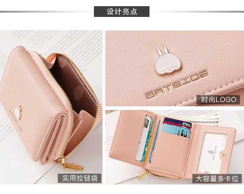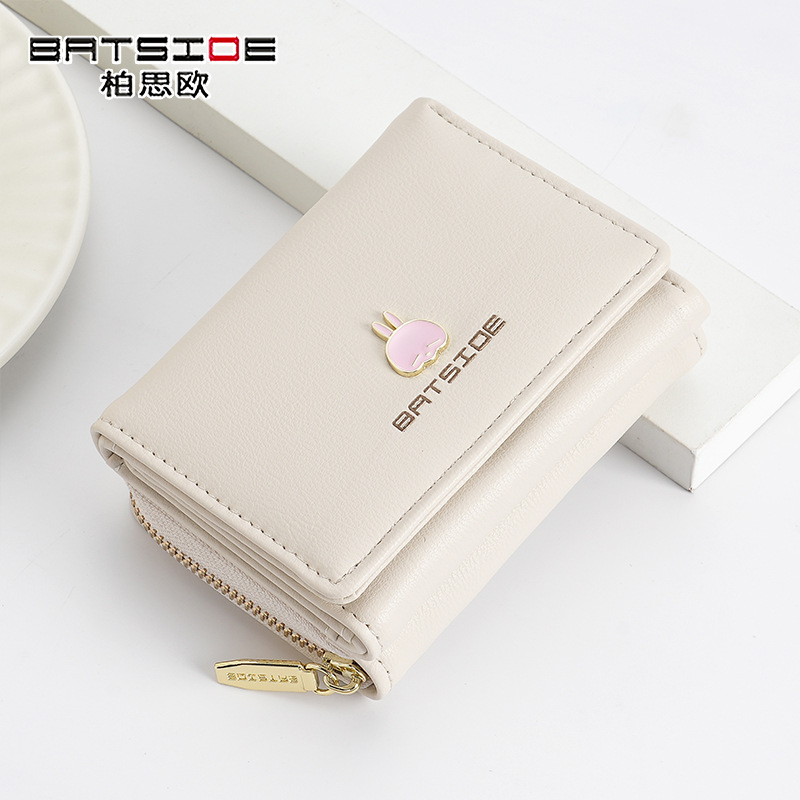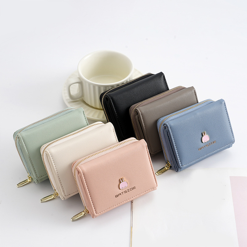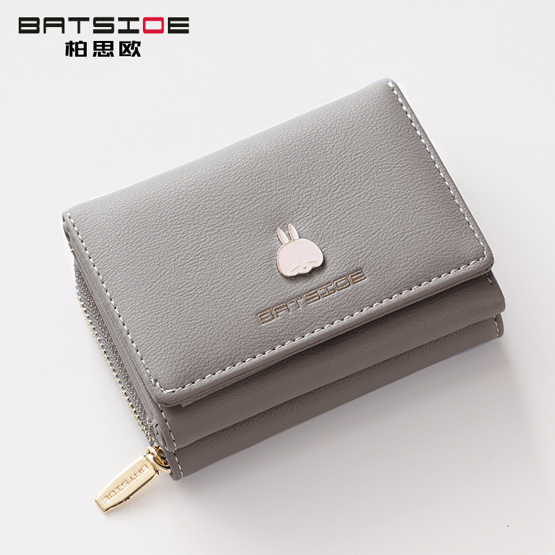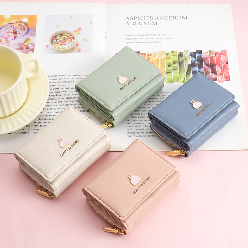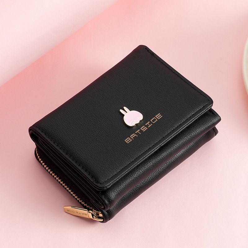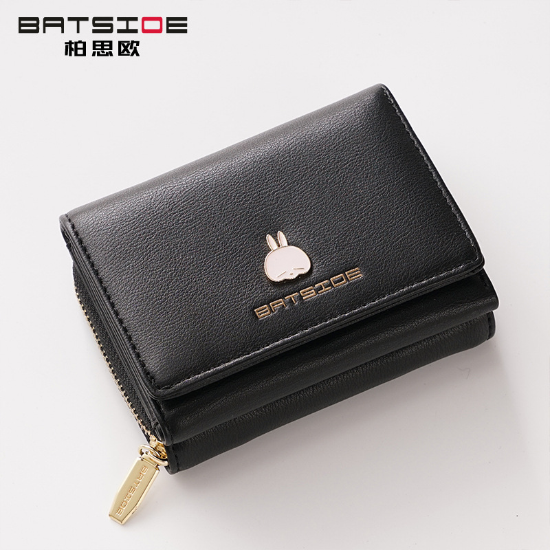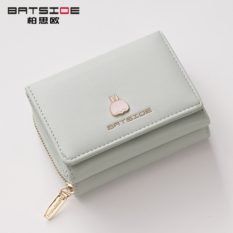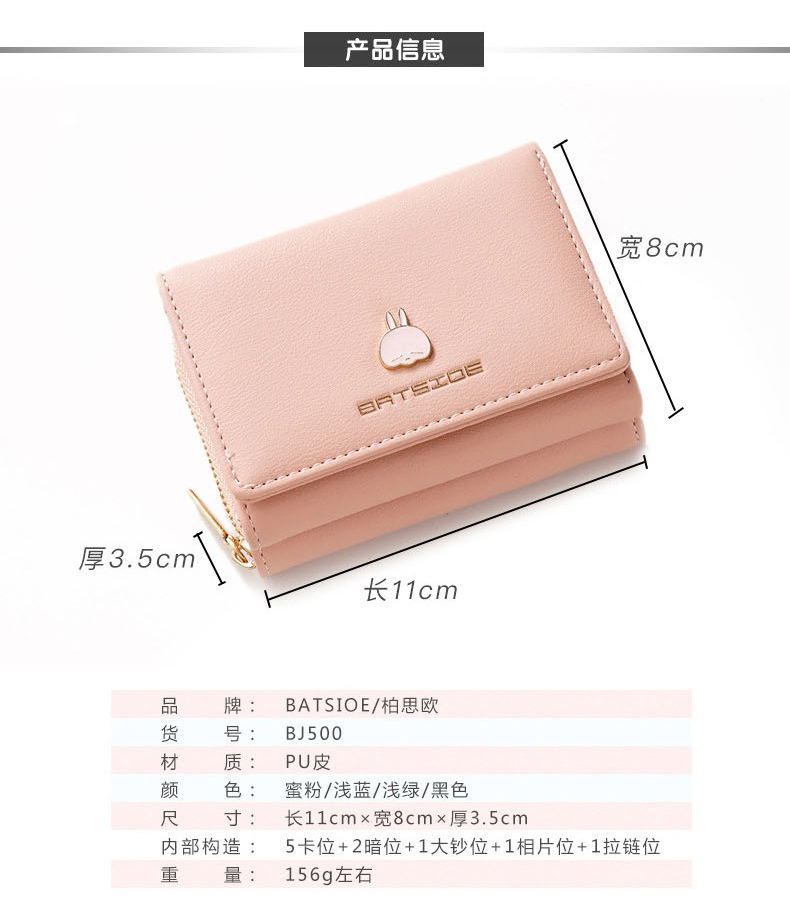BATSIOE 새로운 한국 스타일 스퀘어 여성 지갑 3 중 다기능 카드 홀더 버클 지퍼 만화 동전 지갑