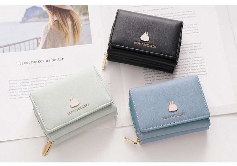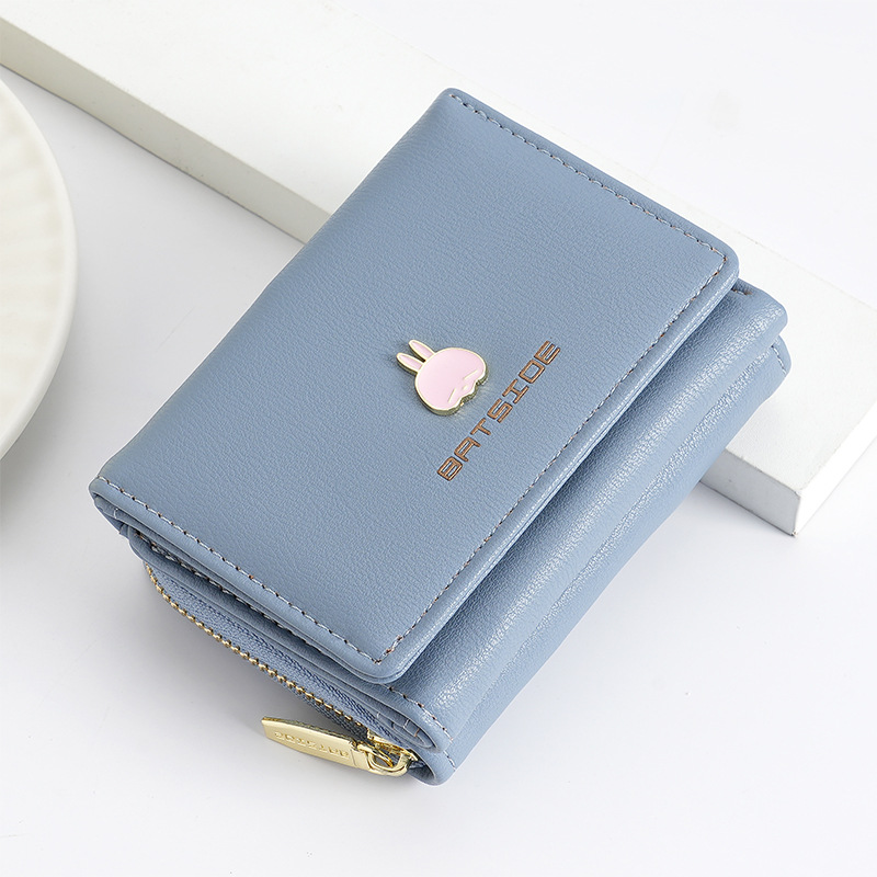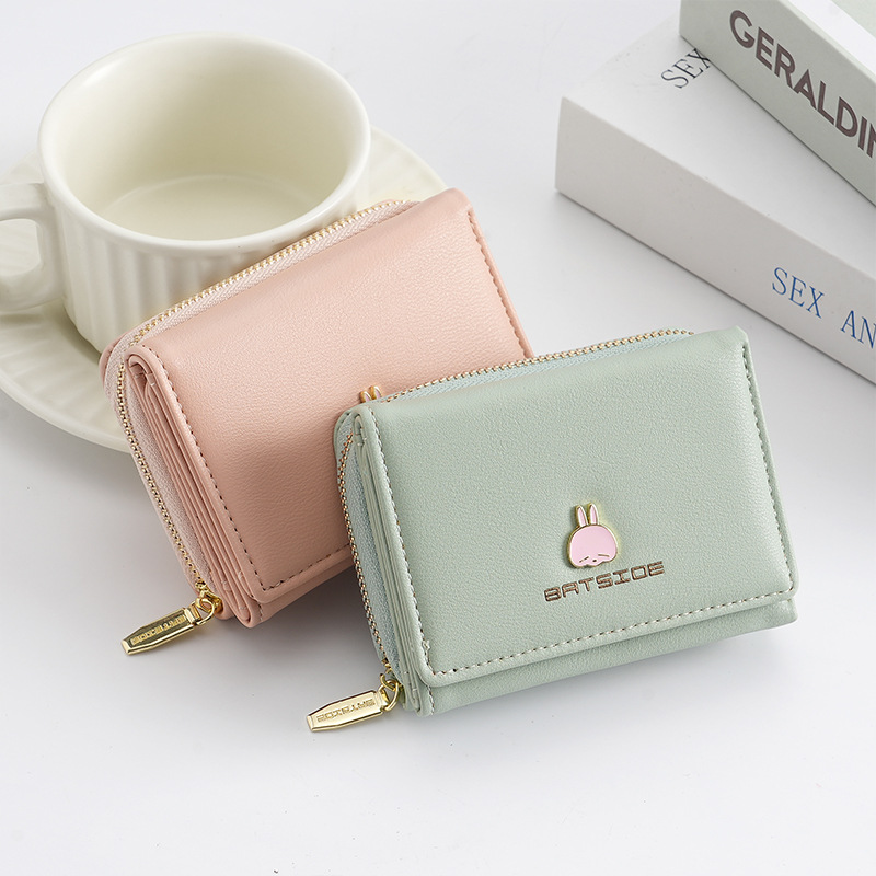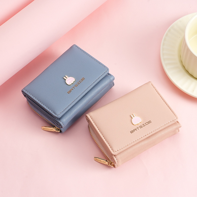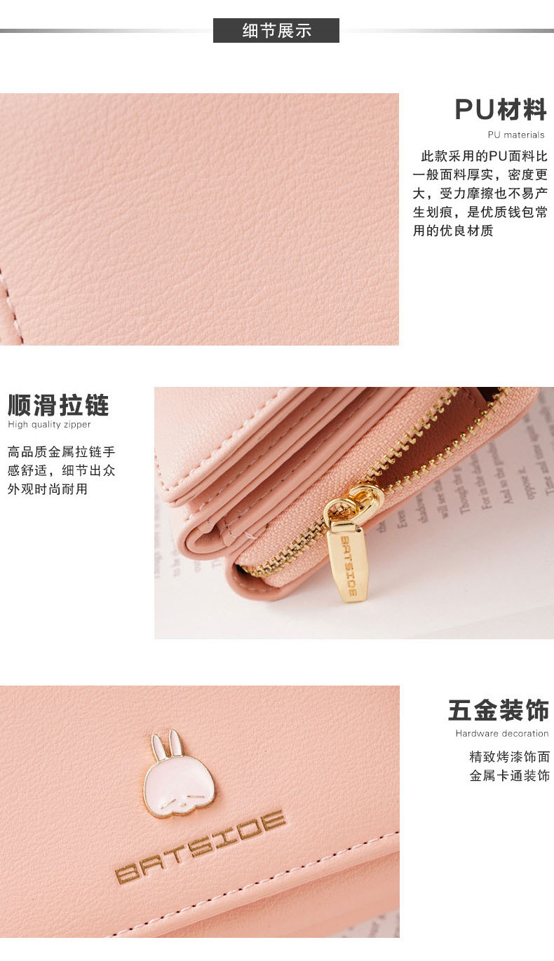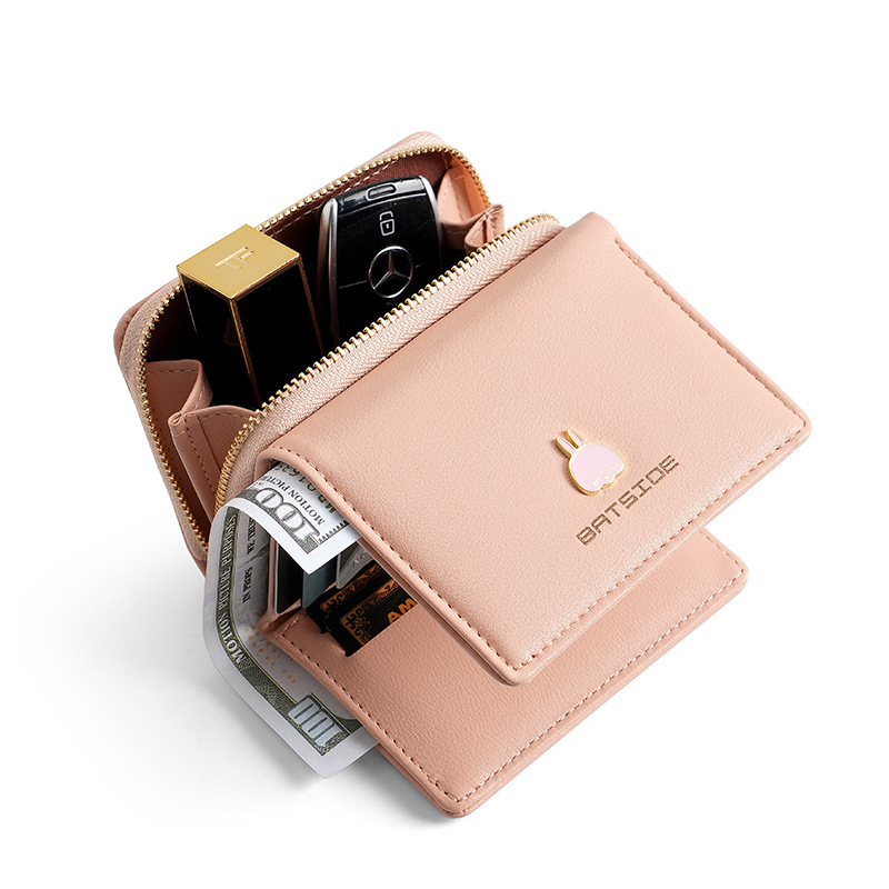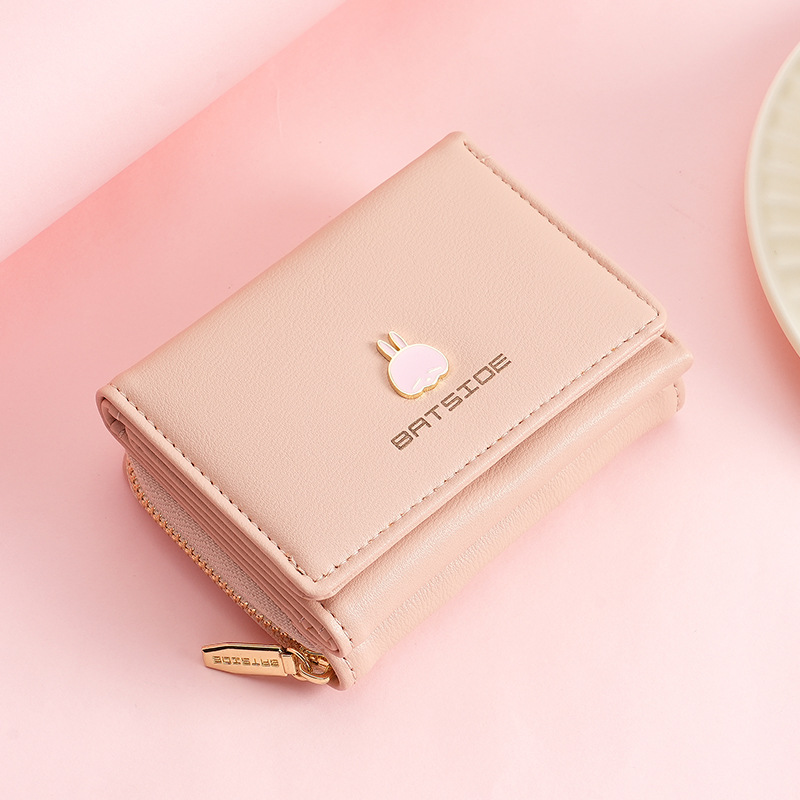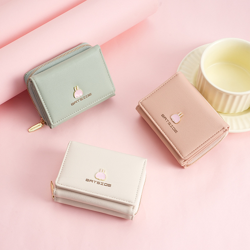 BATSIOE 새로운 한국 스타일 스퀘어 여성 지갑 3 중 다기능 카드 홀더 버클 지퍼 만화 동전 지갑