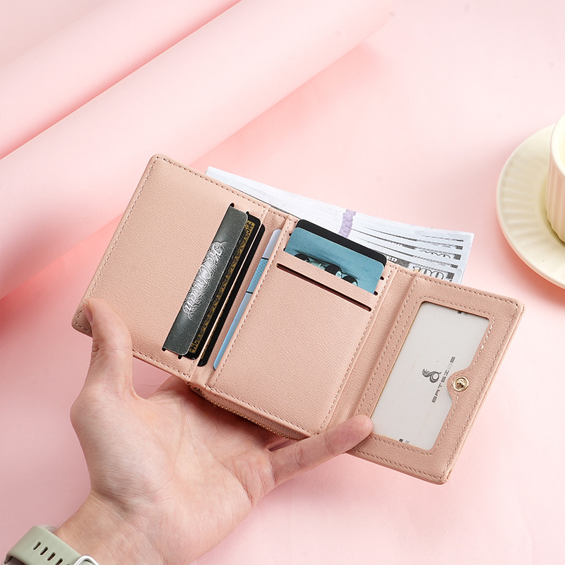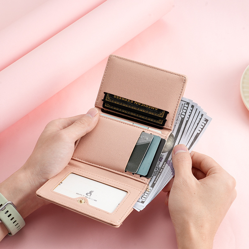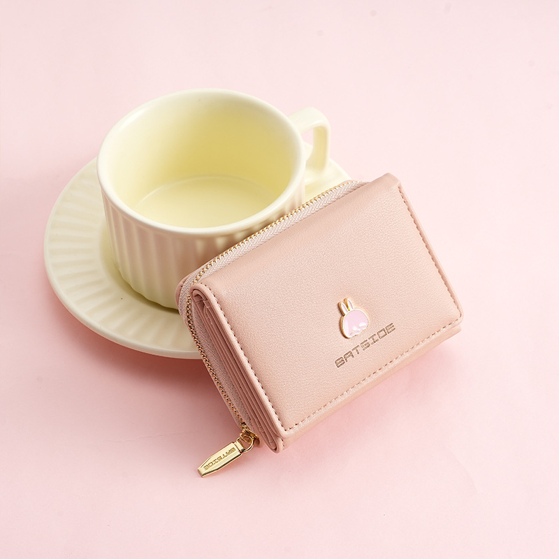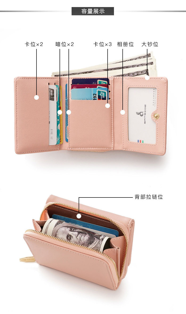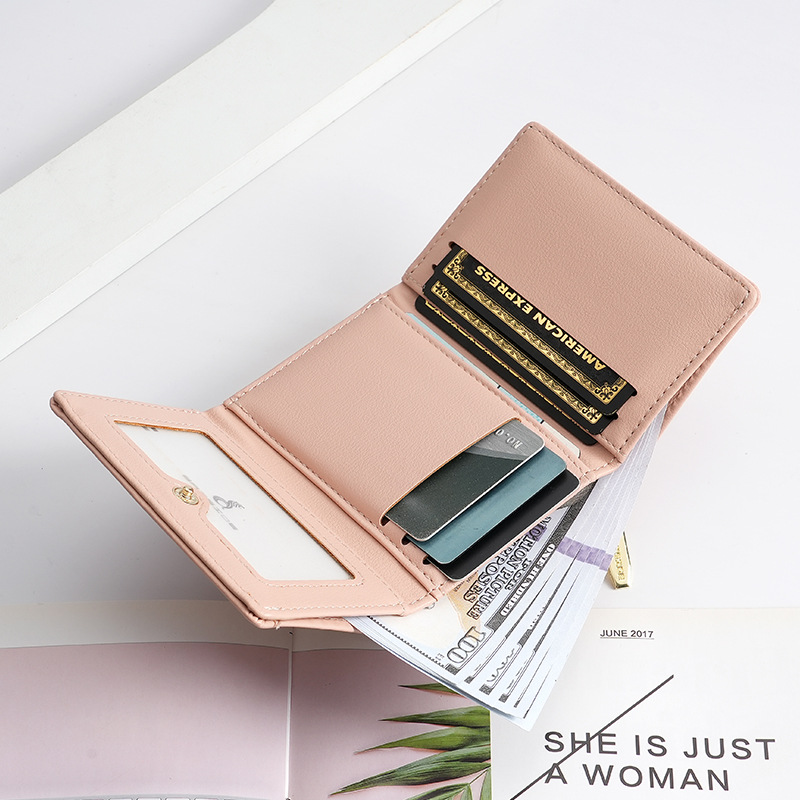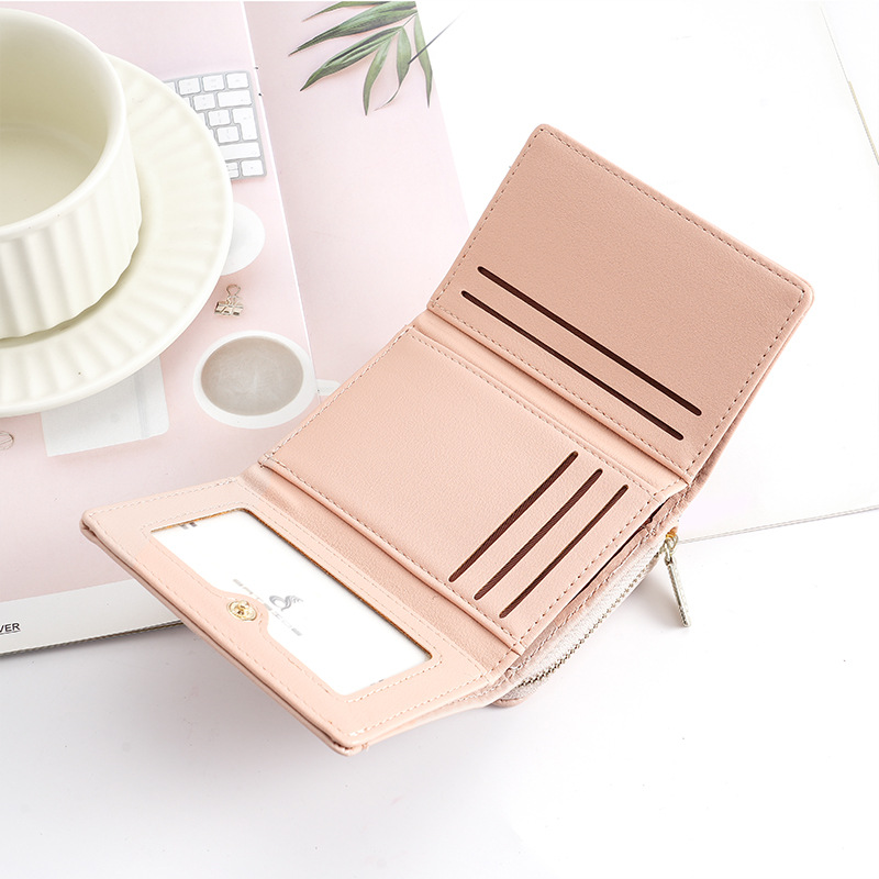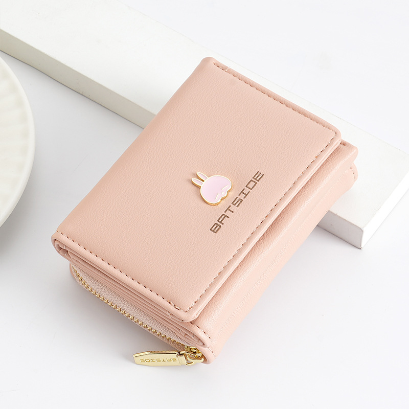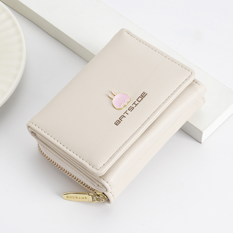 BATSIOE 새로운 한국 스타일 스퀘어 여성 지갑 3 중 다기능 카드 홀더 버클 지퍼 만화 동전 지갑