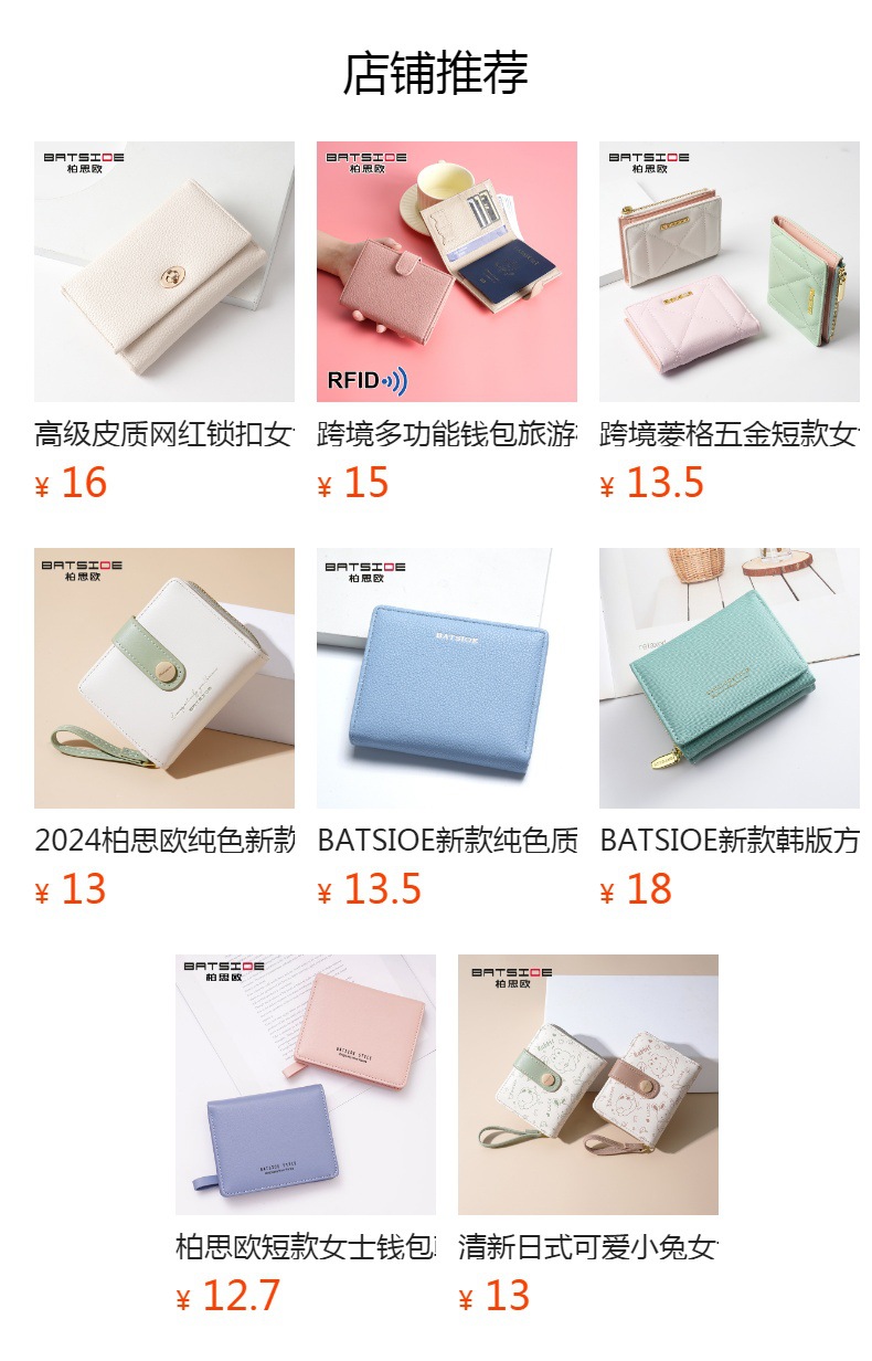 BATSIOE 새로운 한국 스타일 스퀘어 여성 지갑 3 중 다기능 카드 홀더 버클 지퍼 만화 동전 지갑스토어 가기