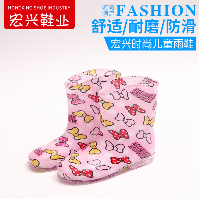 홍싱 신발 가공 어린이 장화 핑크 활 크리스탈 미드 튜브 장화스토어 가기