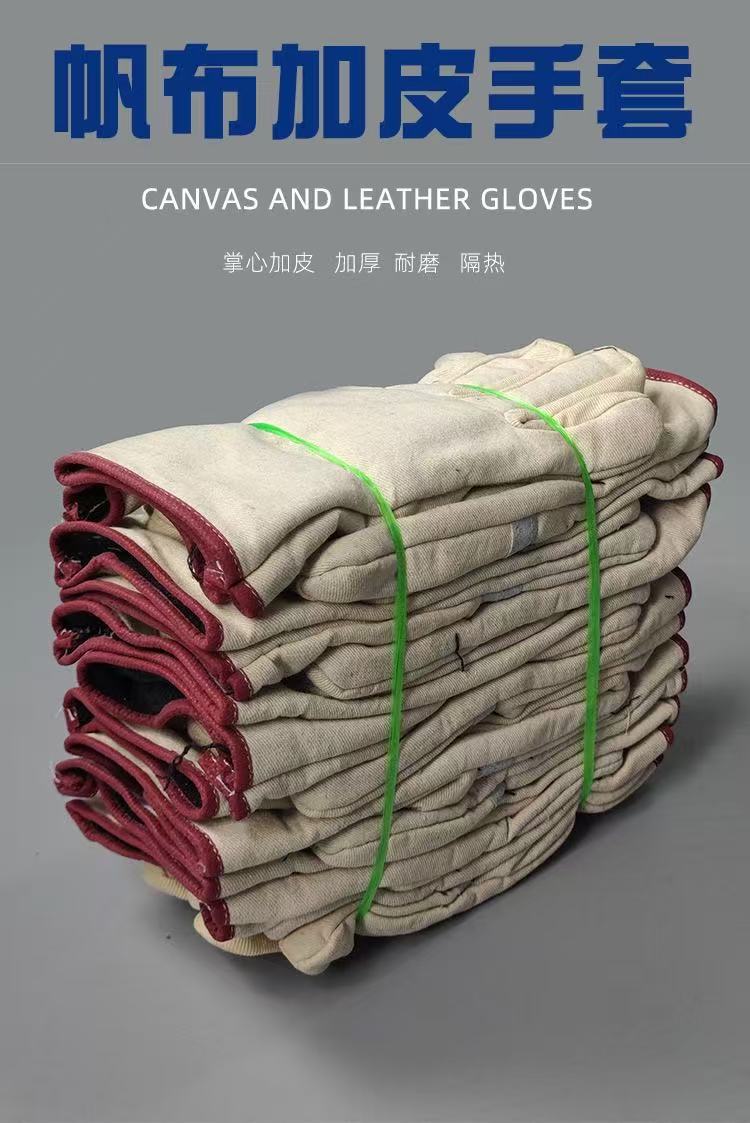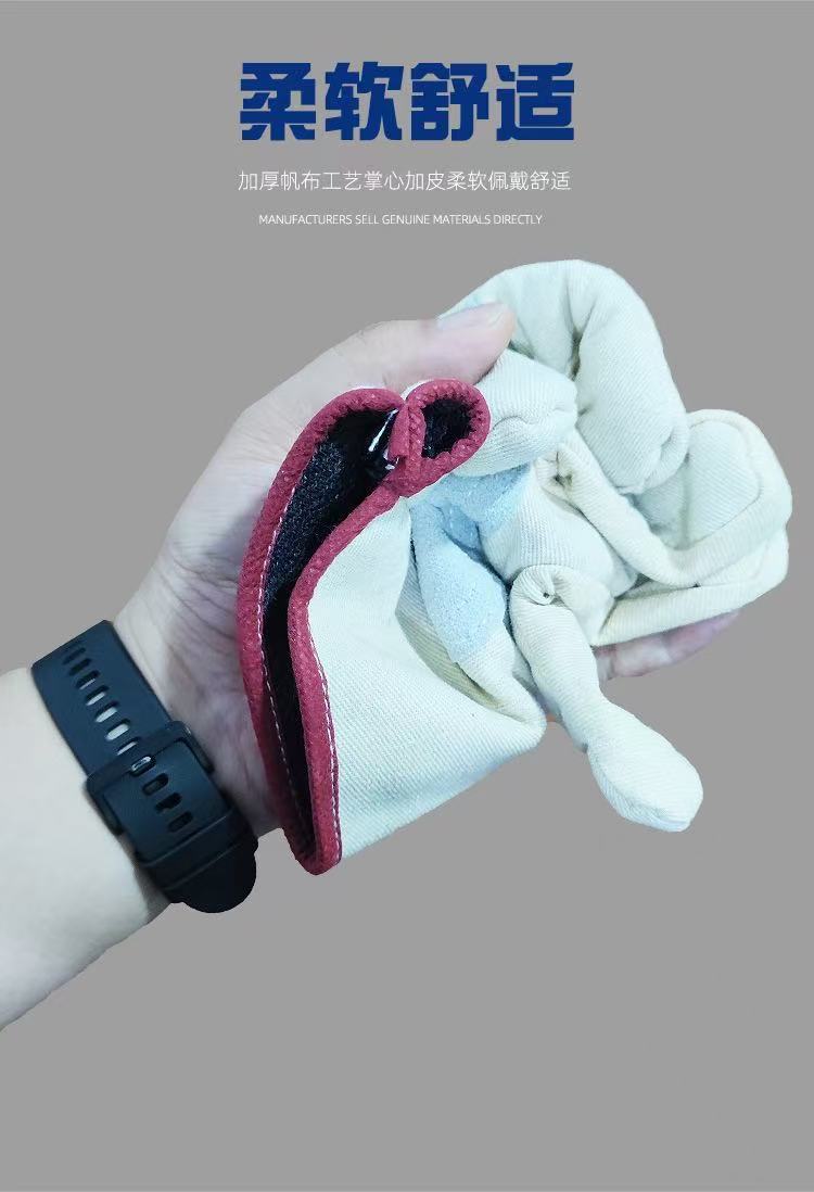 철도용 캔버스 안전 장갑 내마모성 이중층 두꺼운 가죽 혼방 캔버스 장갑 철도용 안전 장갑 도매