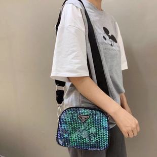 2020新款女包韩版双拉头亮片网布单肩斜挎包休闲包 宽肩带马鞍包