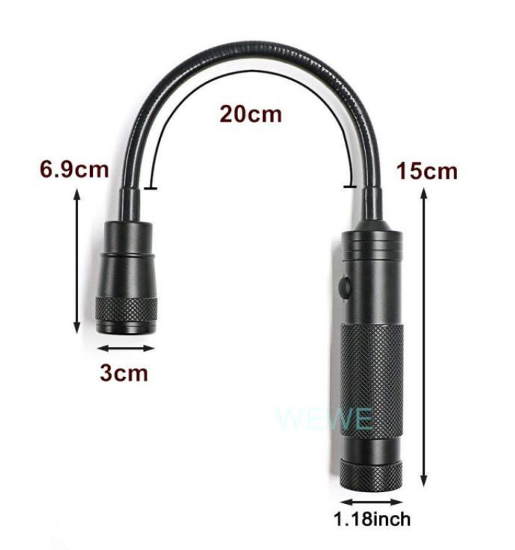 该手电软管灯,灯头可伸缩调焦,软管360度旋转,尾部底座带强磁,集多功能于一体,用于户外烧烤,库房应急,汽车/机床检修等,也可当台灯或手电使用!