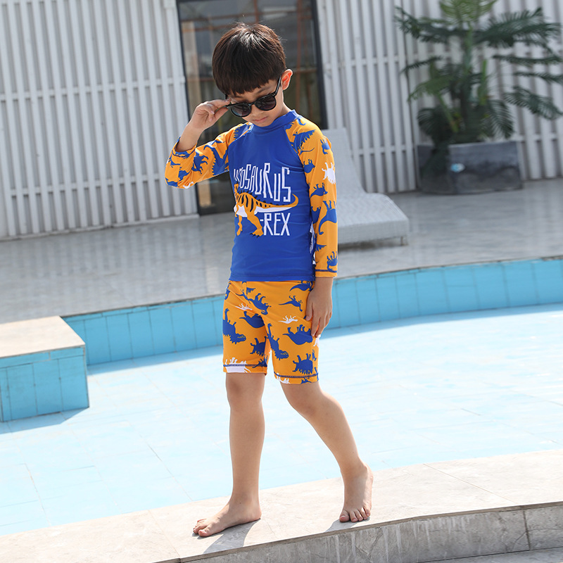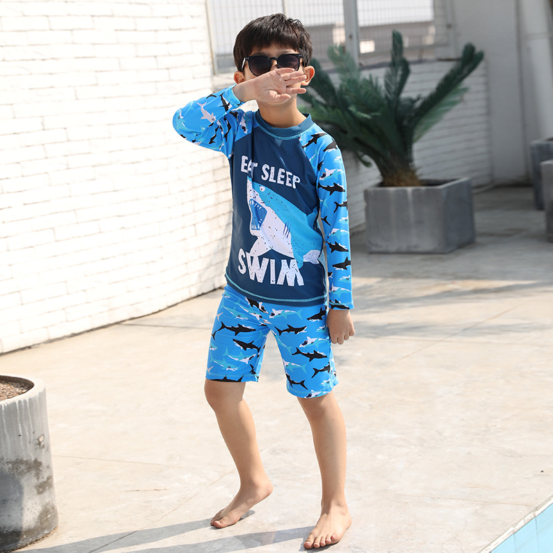 새로운 수영복 한국식 어린이 수영복 긴 소매 만화 공룡 상어 플러스 사이즈 분할 아기 수영복스토어 가기