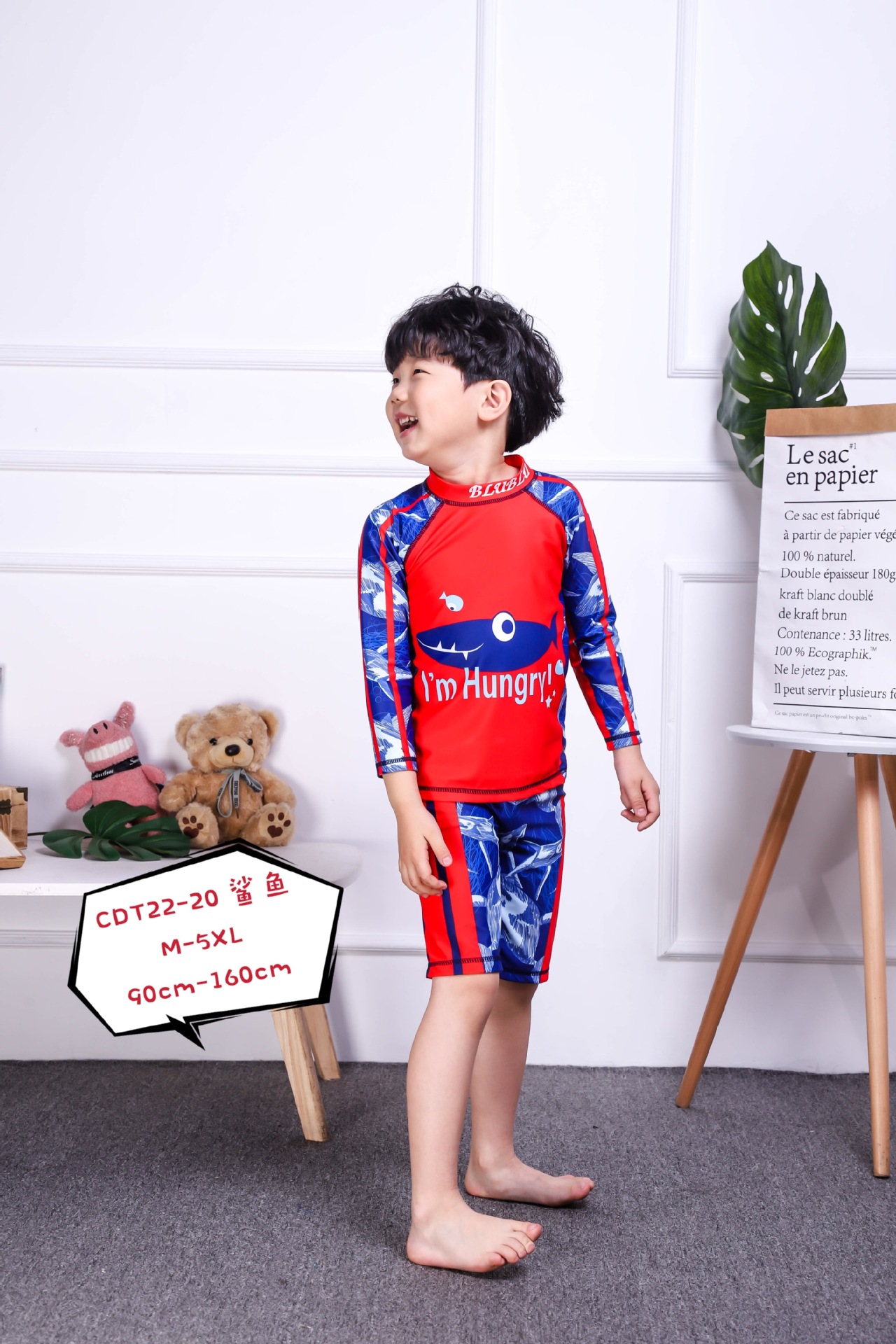 새로운 수영복 한국식 어린이 수영복 긴 소매 만화 공룡 상어 플러스 사이즈 분할 아기 수영복