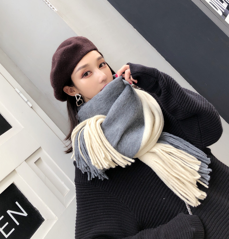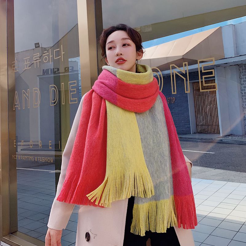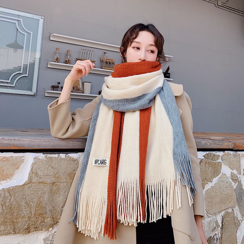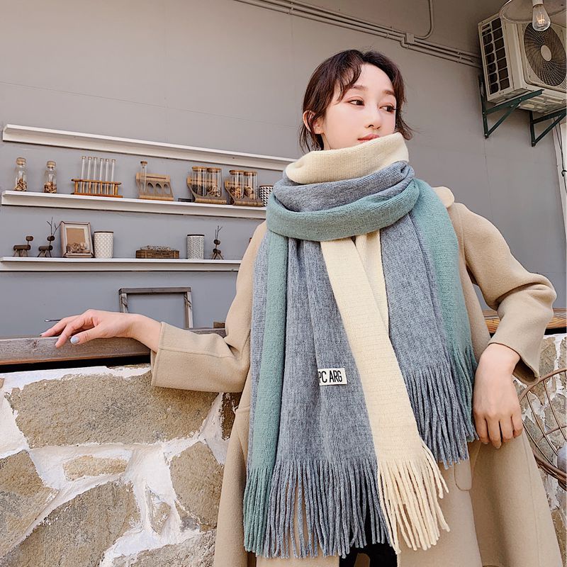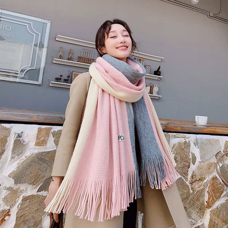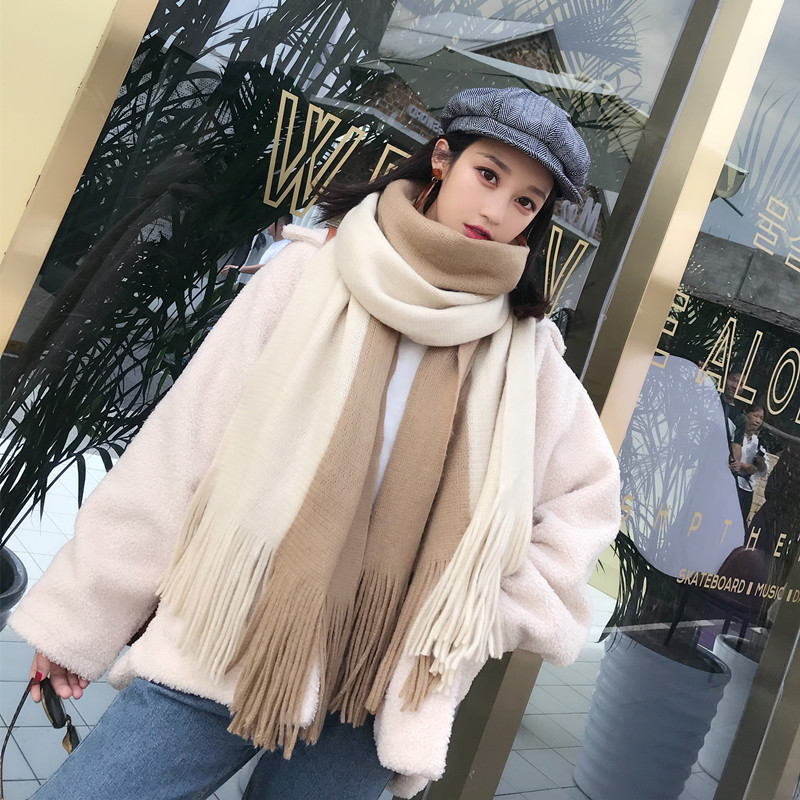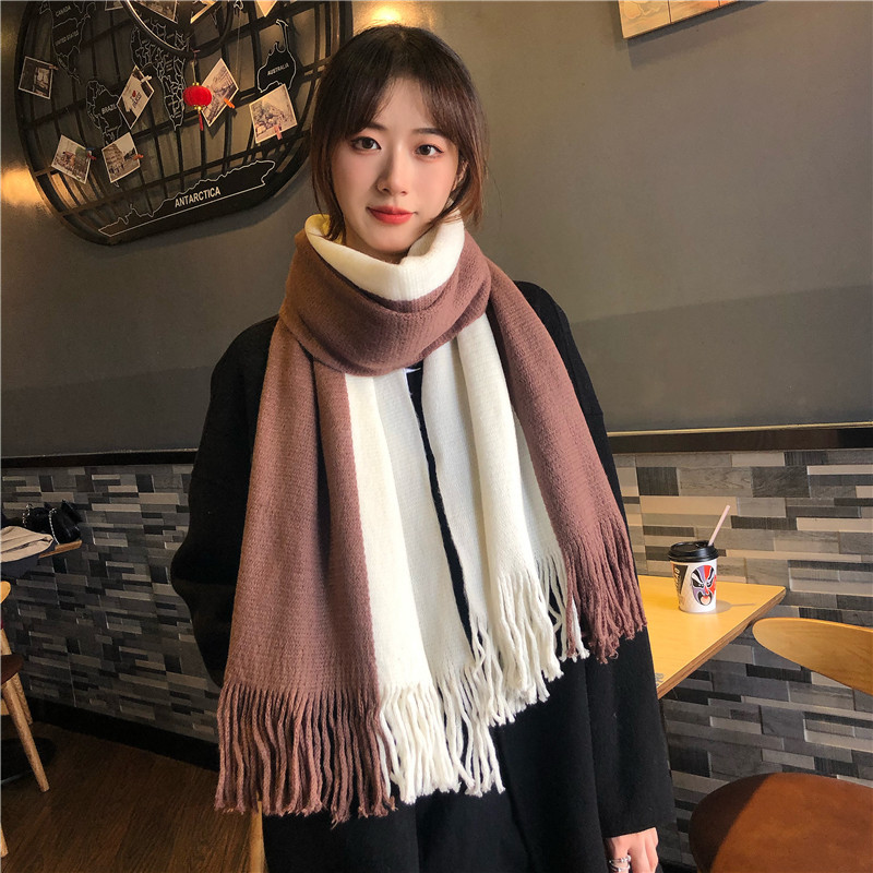 가을과 겨울 한국 스타일 모든 매치 커플 컬러 매칭 스카프 여성용 따뜻한 두꺼운 학생 소녀의 니트 스카프 목도리 남성용 및 여성용