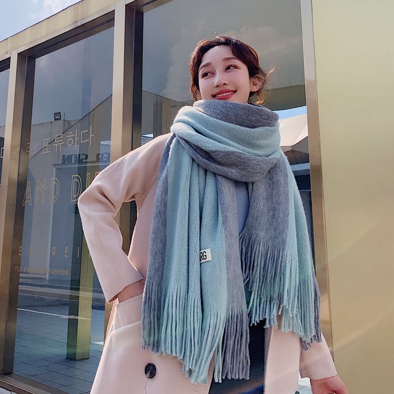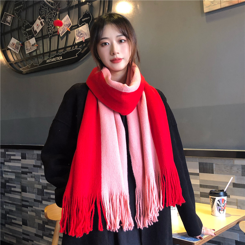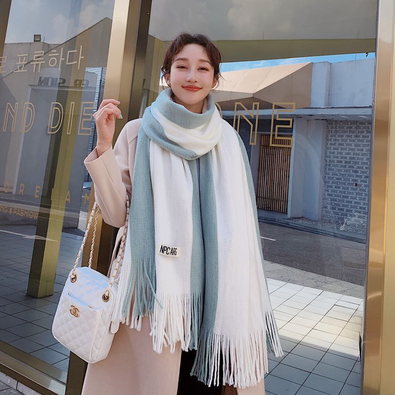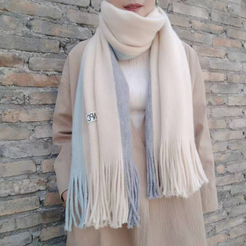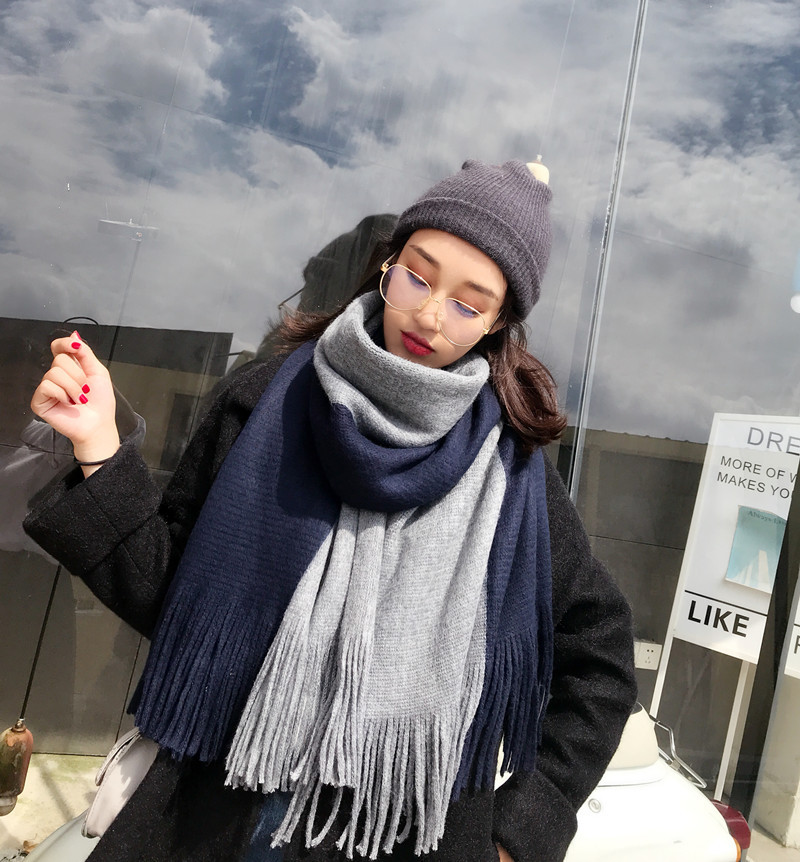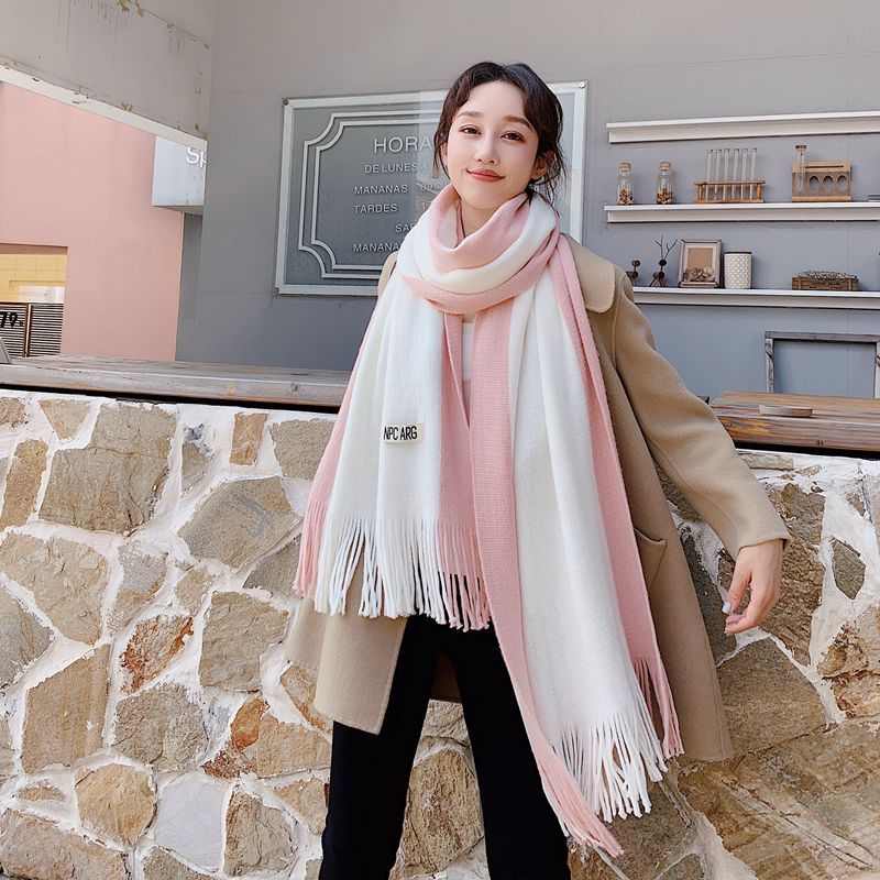 가을과 겨울 한국 스타일 모든 매치 커플 컬러 매칭 스카프 여성용 따뜻한 두꺼운 학생 소녀의 니트 스카프 목도리 남성용 및 여성용
