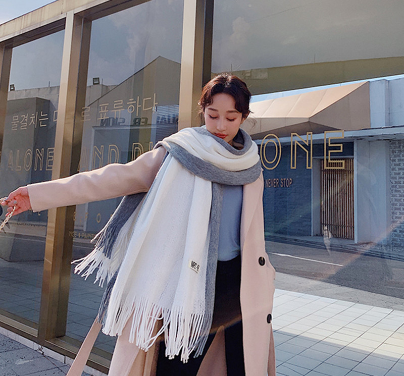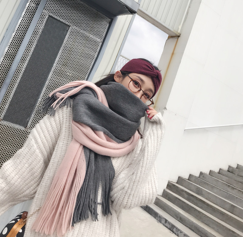 가을과 겨울 한국 스타일 모든 매치 커플 컬러 매칭 스카프 여성용 따뜻한 두꺼운 학생 소녀의 니트 스카프 목도리 남성용 및 여성용스토어 가기