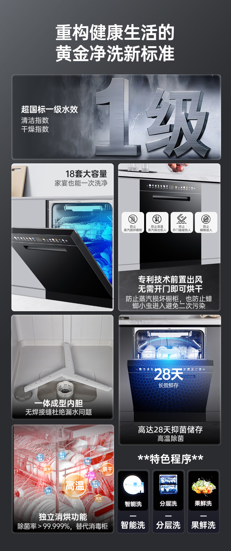 Fang Dai 18 세트 주파수 변환 식기 세척기 완전 자동 가정용 내장 대용량 세척용 팬 건조 살균 재고스토어 가기