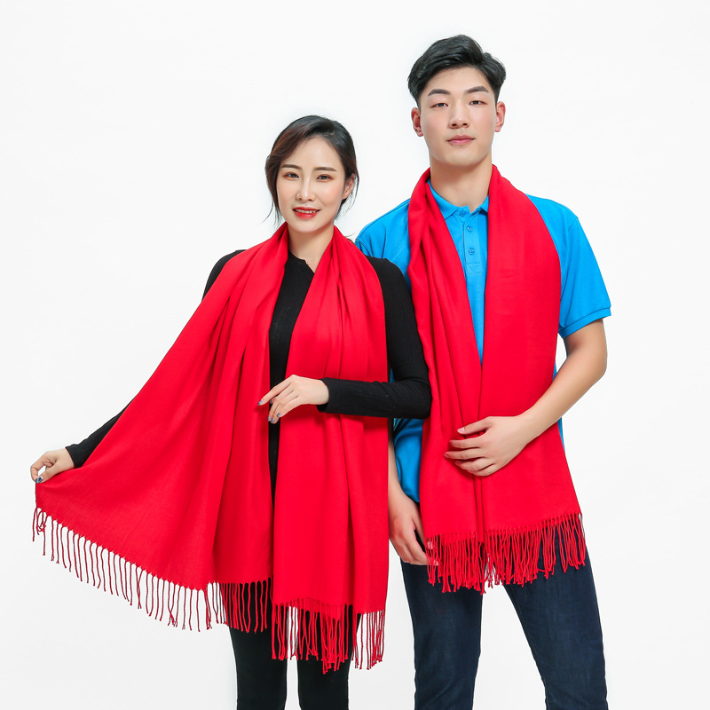 빨간 스카프 개업 축하 행사 연례 선물 모조 캐시미어 빨간 스카프 목도리 로고 인쇄 공장 도매