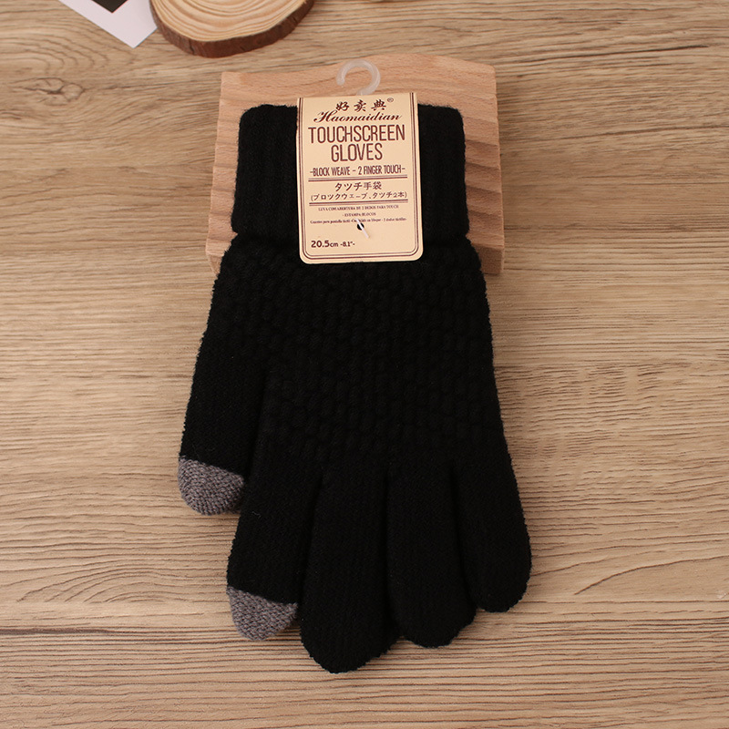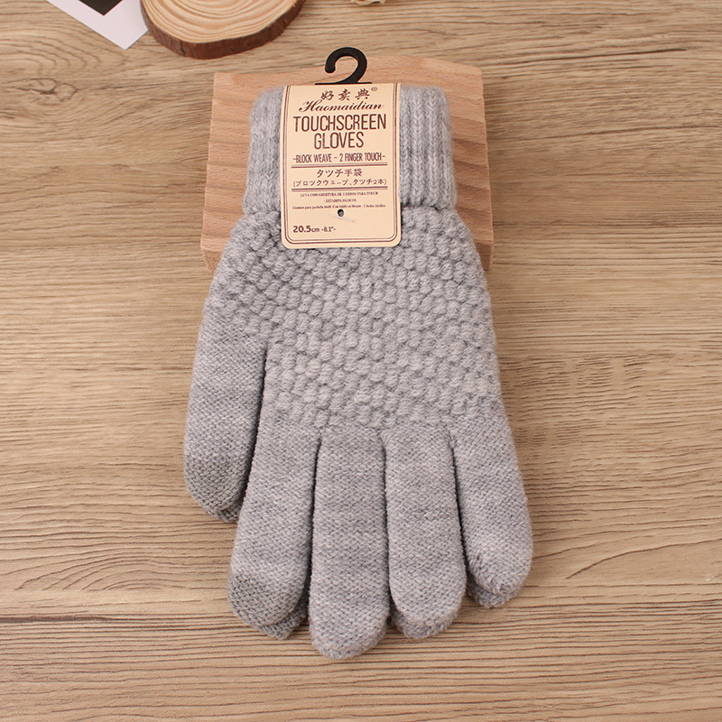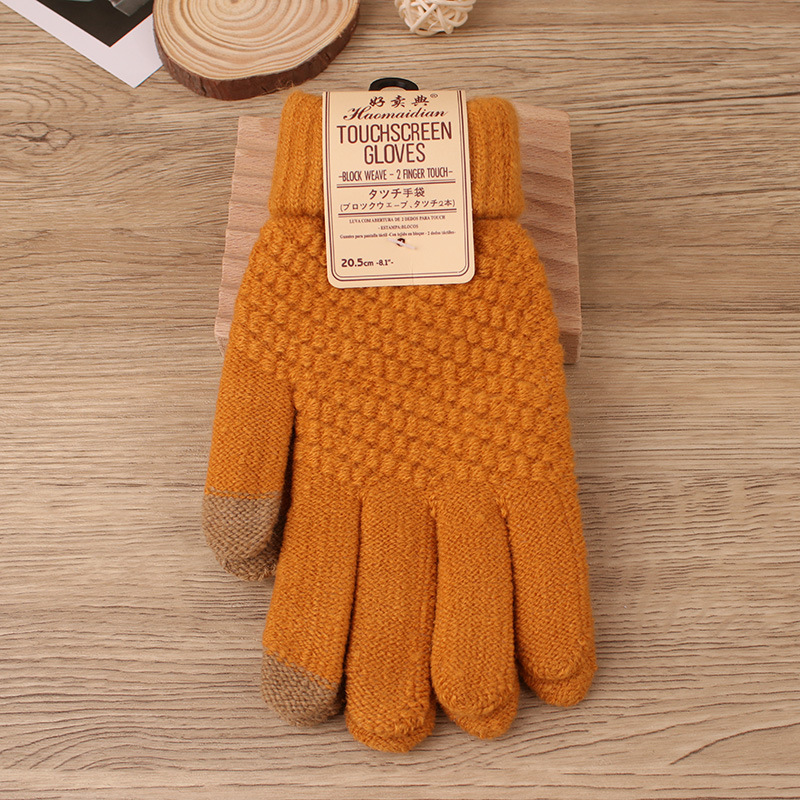 장갑 여자의 겨울 터치 스크린 따뜻한 한국 니트 장갑 다섯 손가락 자카드 기모 차가운 야외 승마 도매