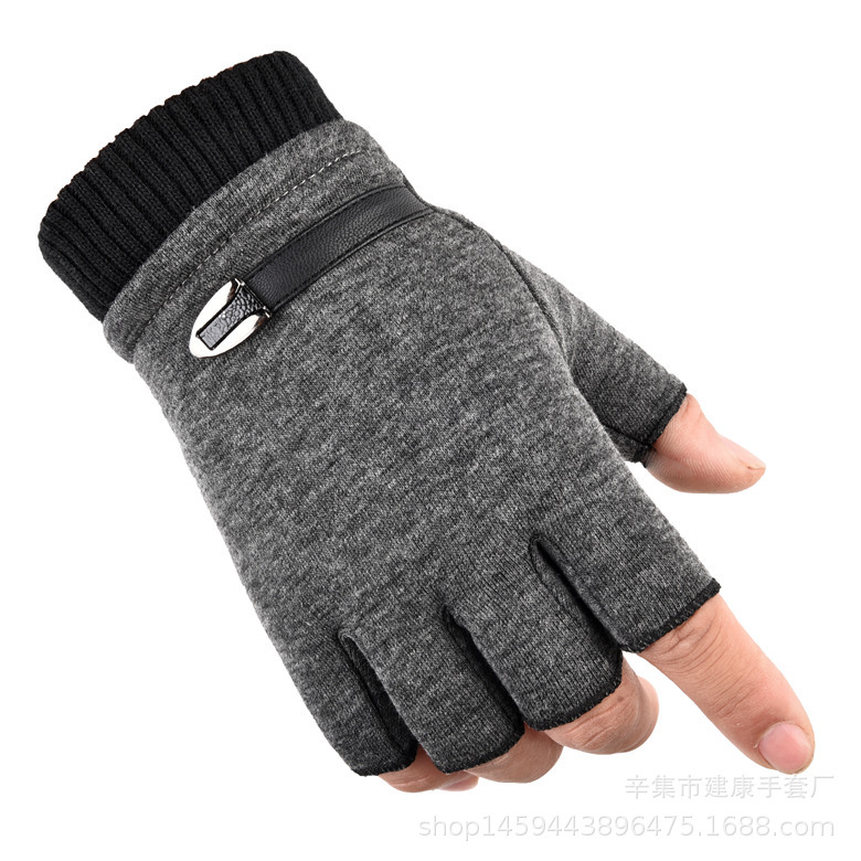가을, 겨울 비 떨어지는 벨벳 남성과 여성의 반 손가락 장갑 야외 따뜻한 플러스 벨벳 두꺼운 사이클링 어린이 장갑 커플 스타일스토어 가기
