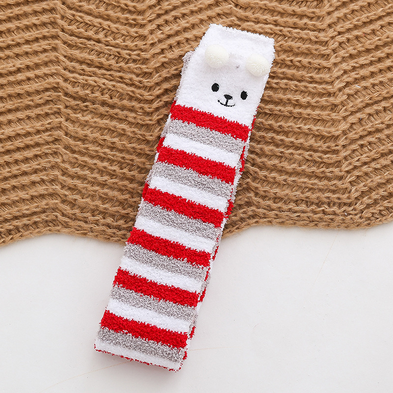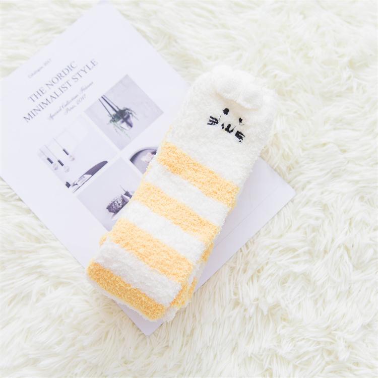가을과 겨울 긴 산호 양털 양말 여성용 무릎 두꺼운 따뜻한 수면 수건 줄무늬 양말 대외 무역 새로운스토어 가기