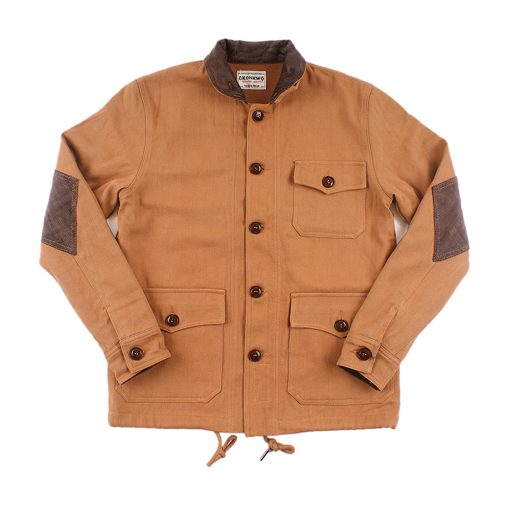 领口、袖肘位补丁和袖口是灯芯绒布。