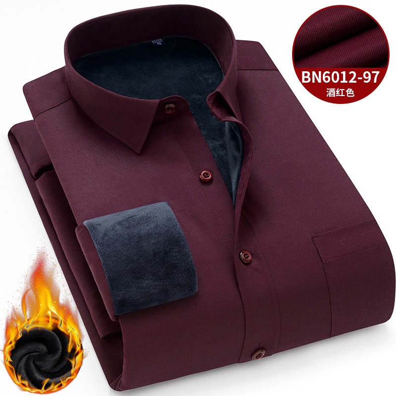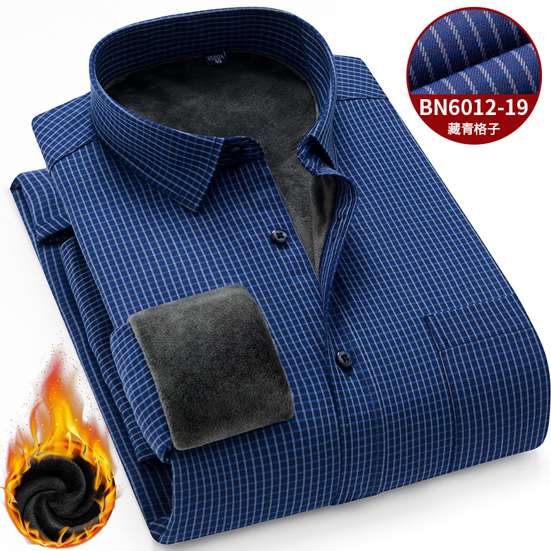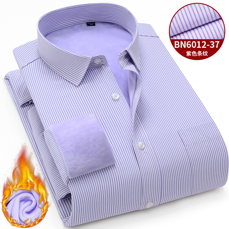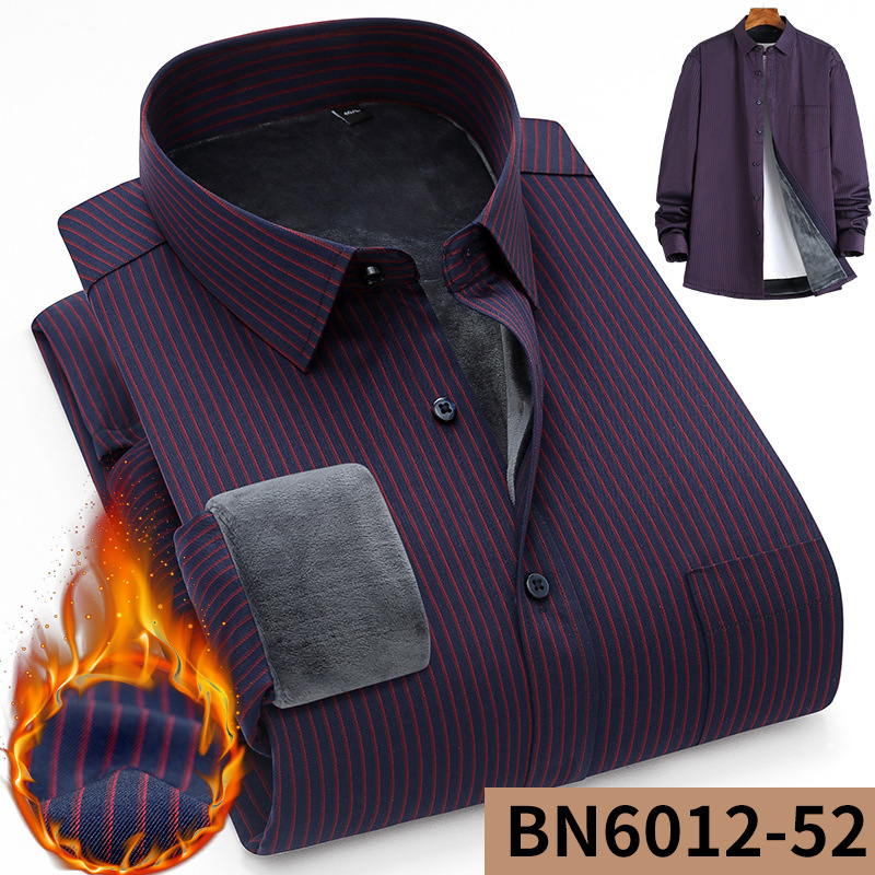 겨울 새로운 남자의 기모 두꺼운 긴 소매 셔츠 중년 아빠 비즈니스 캐주얼 스트라이프 따뜻한 셔츠