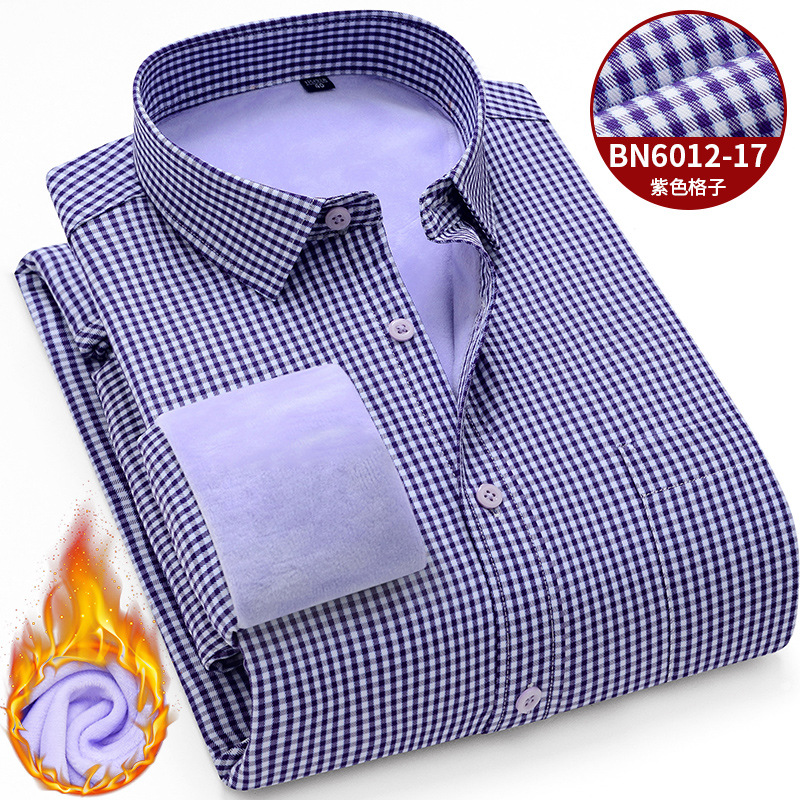 겨울 새로운 남자의 기모 두꺼운 긴 소매 셔츠 중년 아빠 비즈니스 캐주얼 스트라이프 따뜻한 셔츠스토어 가기