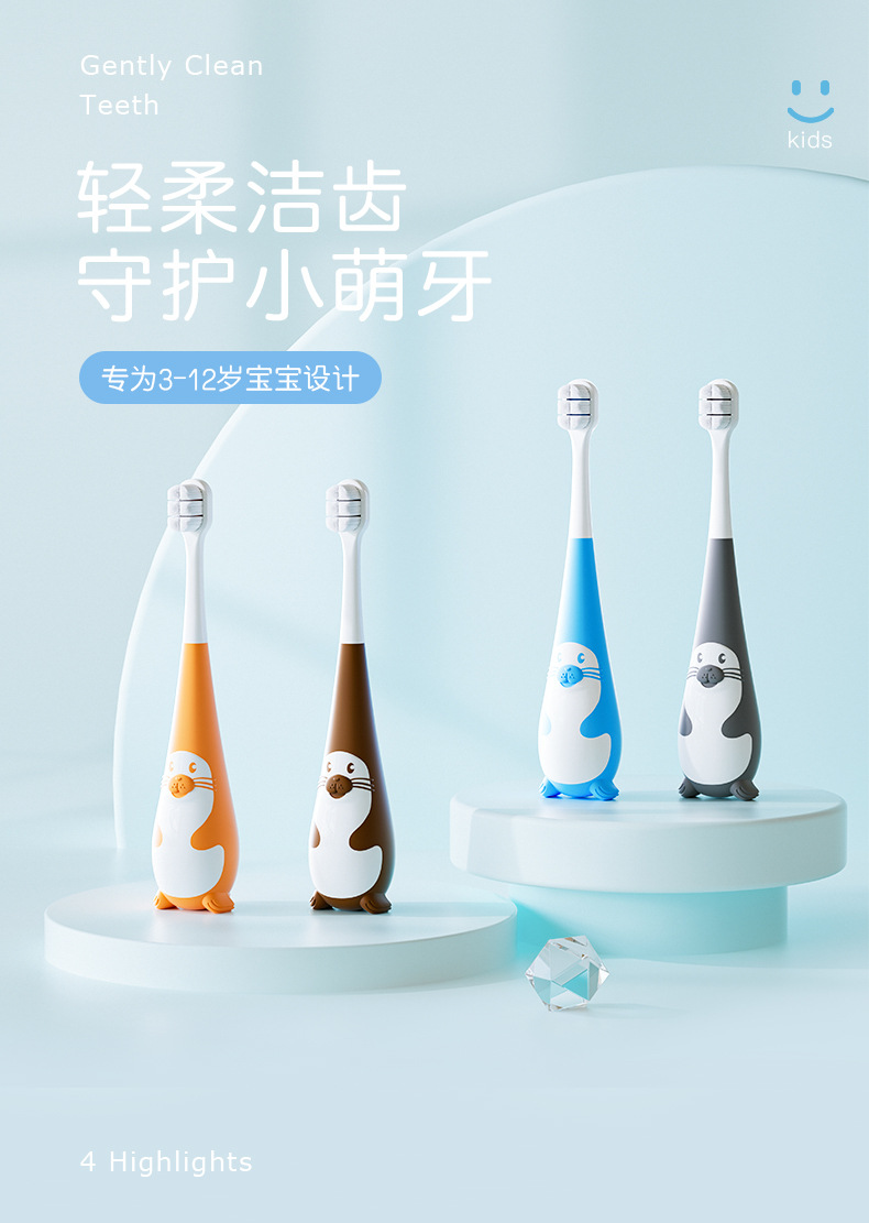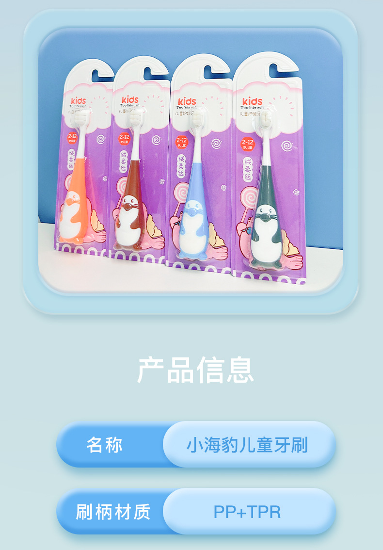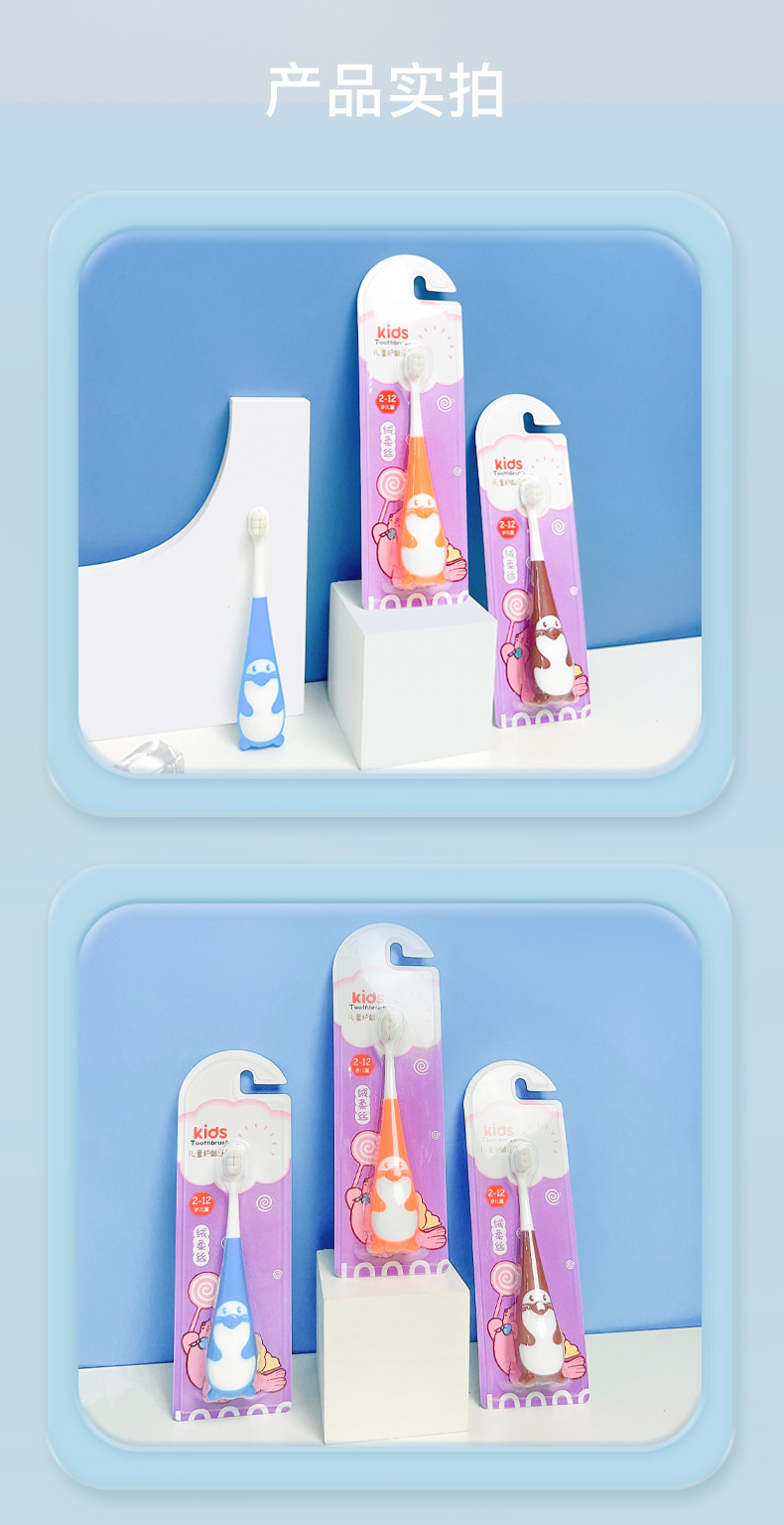 귀여운 귀여운 작은 물개 10,000 부드러운 머리 어린이 칫솔 가정용 구강 청소 공장 직접 생필품 실속