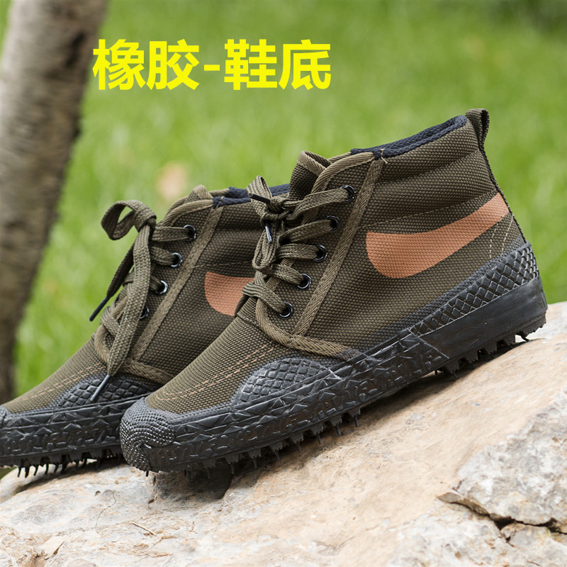 하이탑 고무 밑창 릴리스 신발 위장 건설 현장 옥외 노동 작업 신발 노동 보호 황색 고무 신발 제조 업체 도매스토어 가기