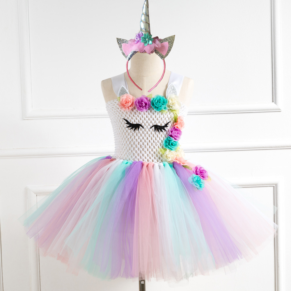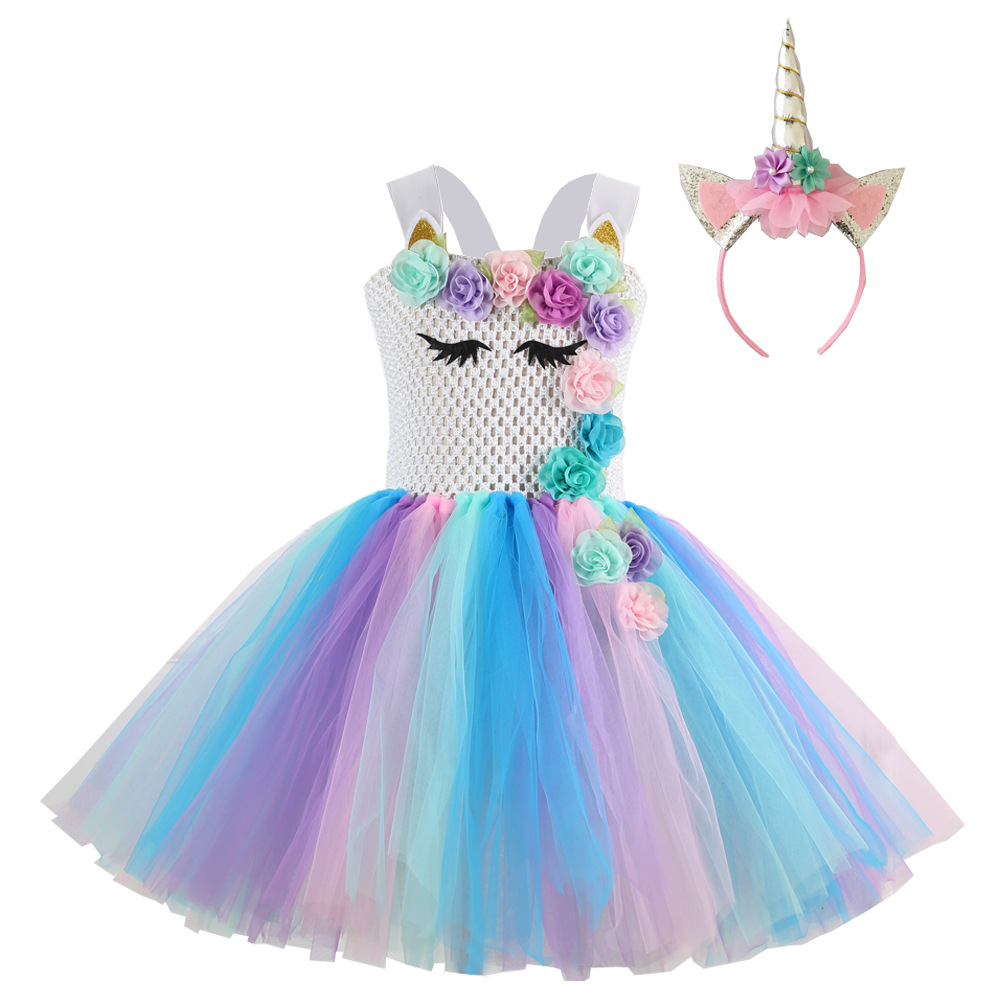 • 2023渐变亮片女童tutu裙送头饰 生日派对独角儿童网纱蓬蓬裙独角