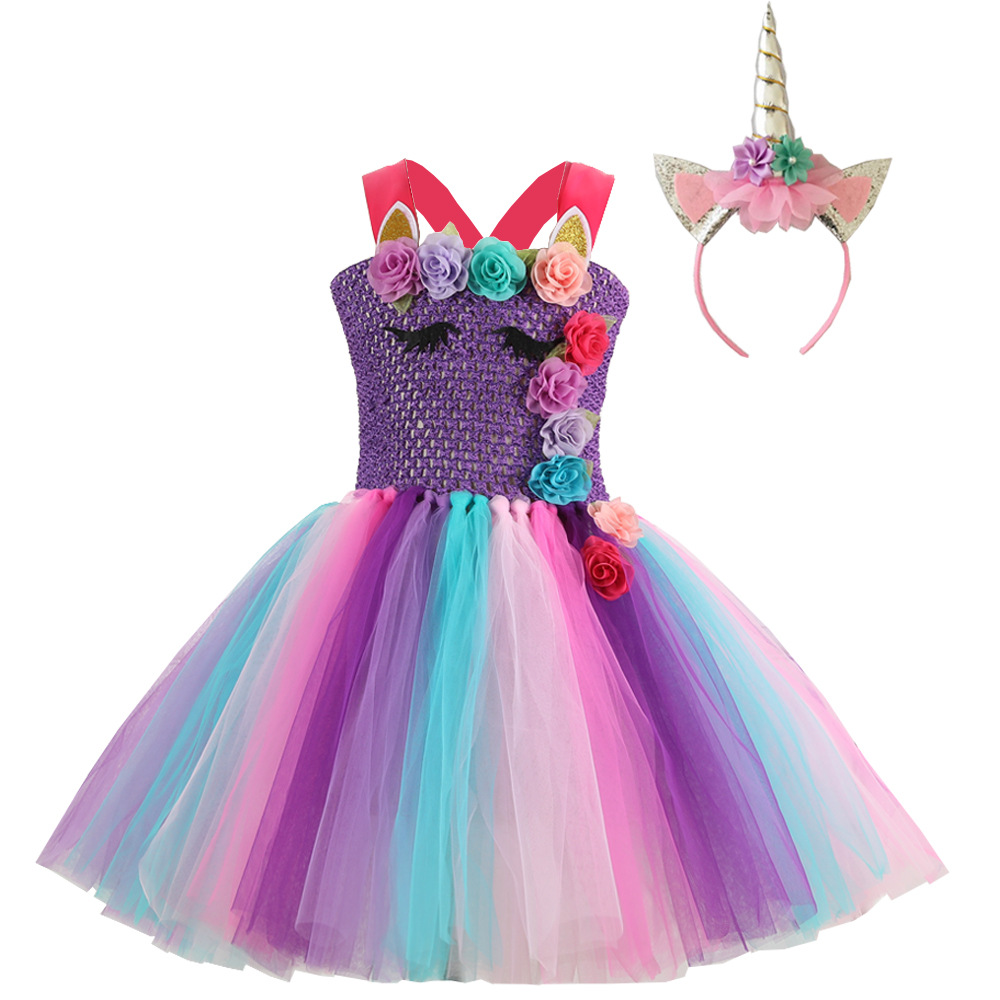 • 外贸童装万圣节cospaly彩虹亮片独角礼服裙女童连衣裙公主裙tutu