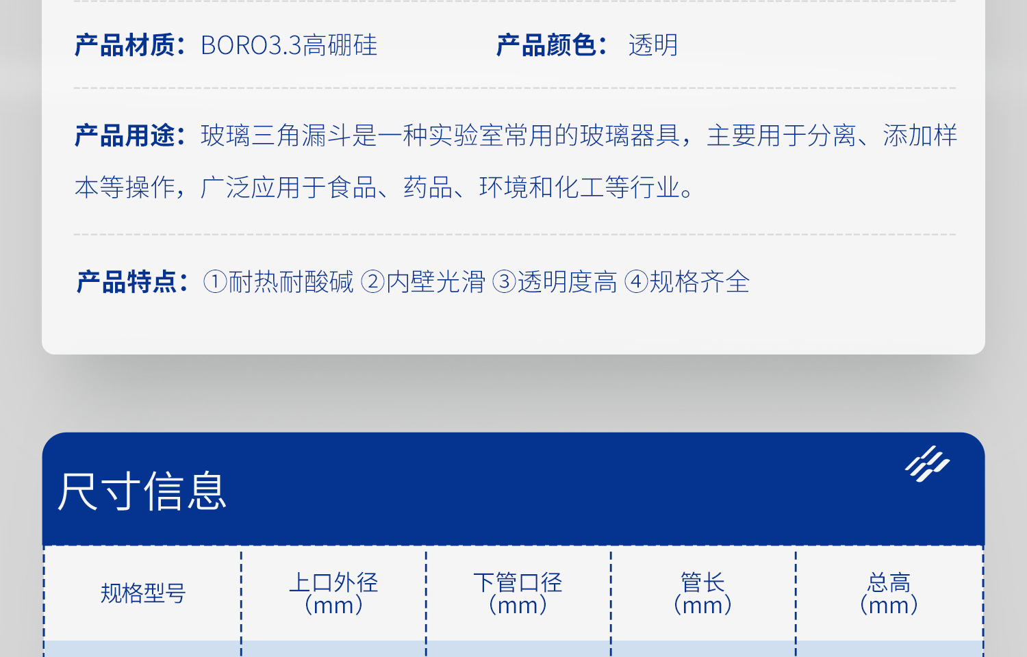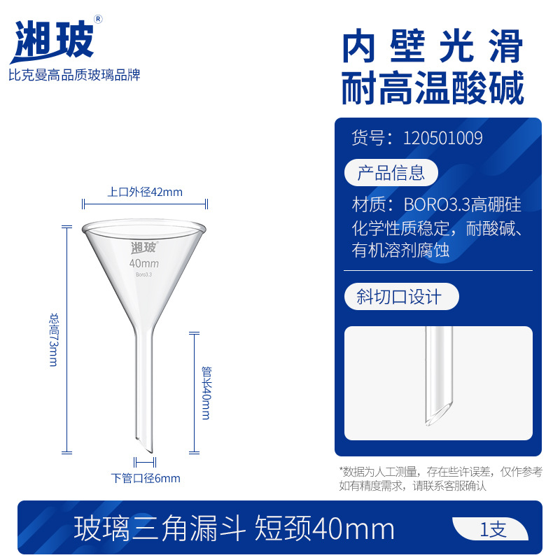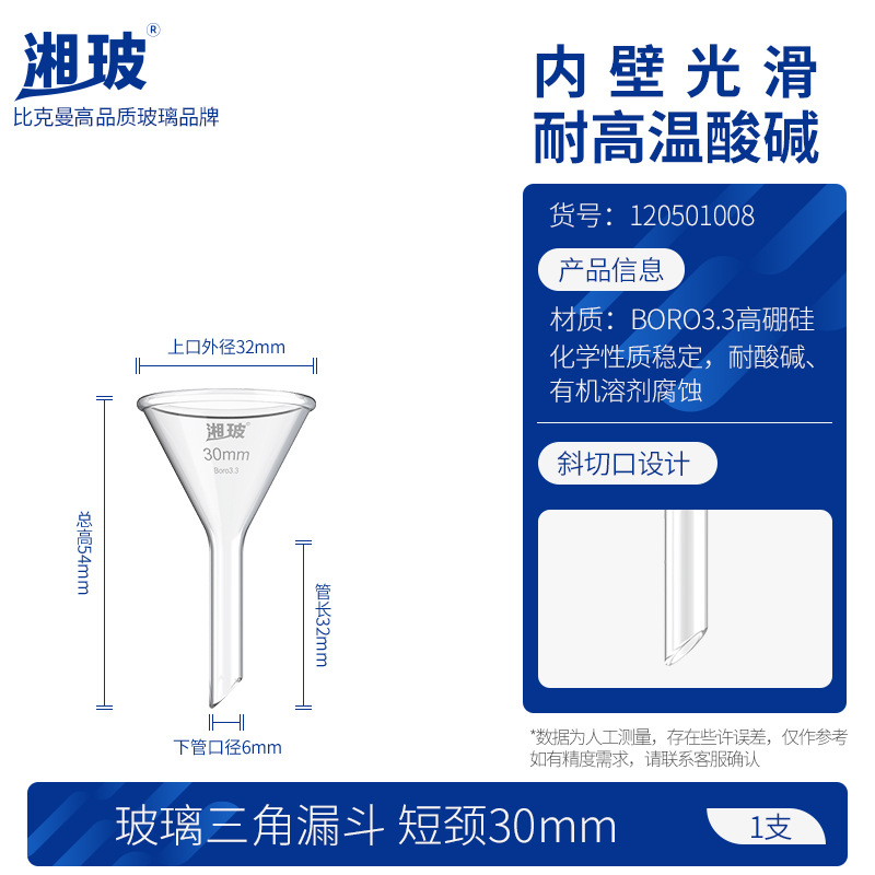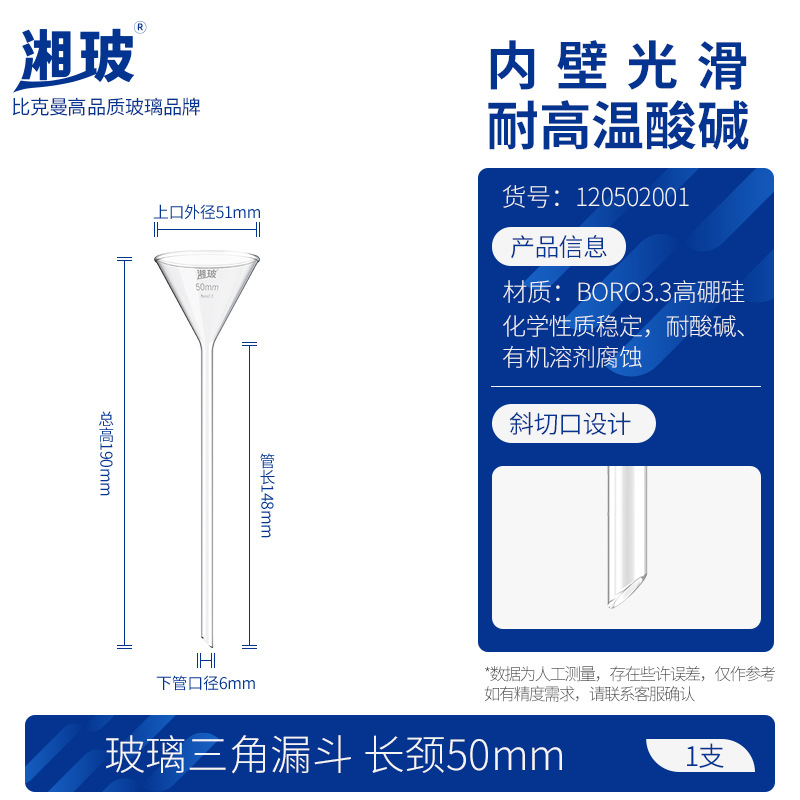 후난 유리 삼각형 깔때기 실험실 테이퍼 높은 붕규산 긴 목 두꺼운 스몰 사이즈 직경 짧은 튜브 60 120mm스토어 가기