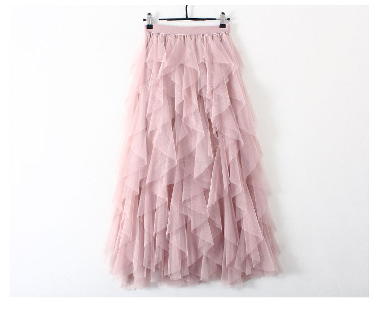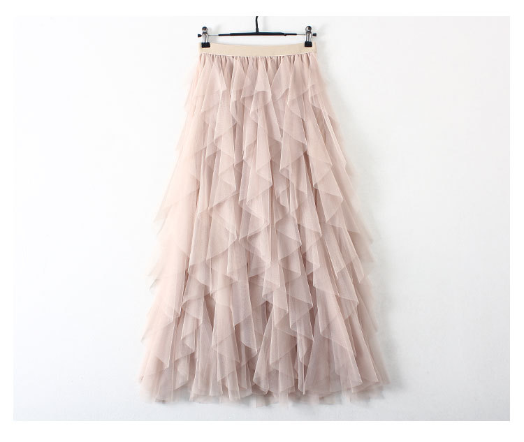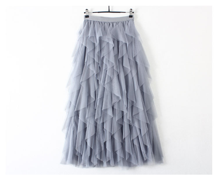 봄 2023 한국 버전의 탄성 허리 패션 모든 경기 슬리밍 메쉬 스티칭 불규칙한 긴 하이 웨이스트 스커트