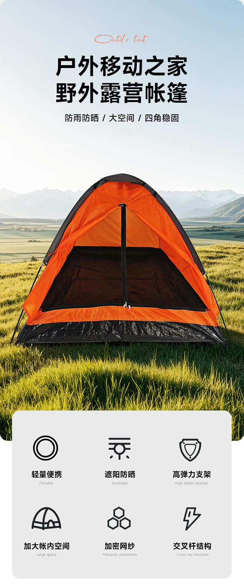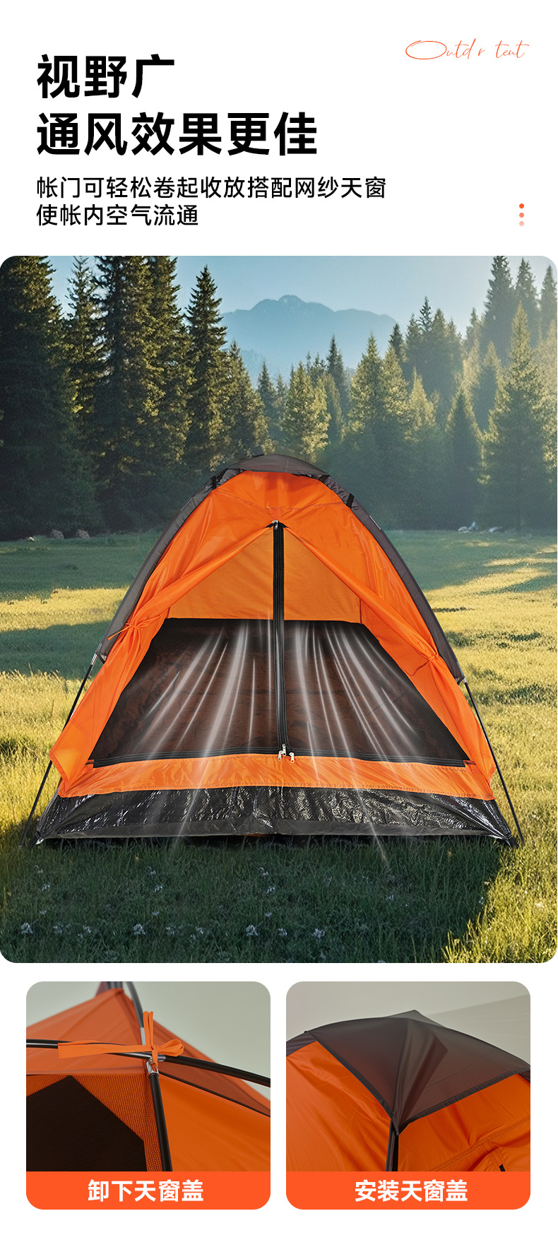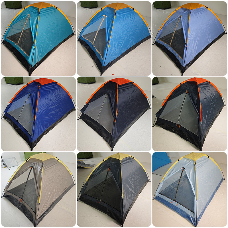 아마존 야외 더블 성인 캠핑 텐트 해변 캠핑 용품 단일 레이어 휴대용 3-4 인 텐트 풀 세트