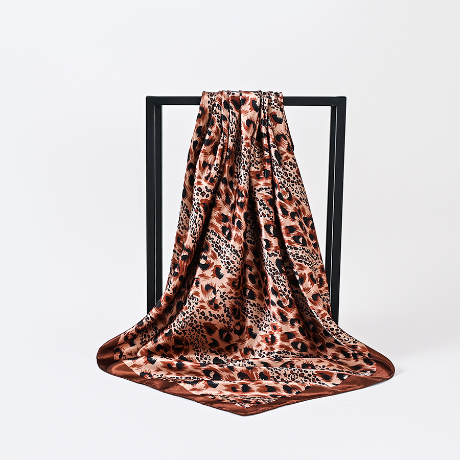 국경을 넘는 인기 상품 레오파드 프린트 실크 스카프 90*90cm 대형 스카프 인조 실크 스카프 여성 캐주얼 헤드 스카프