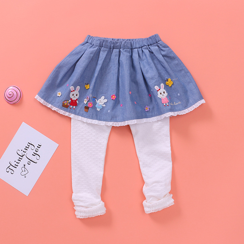 아동복 일본 트렌드 브랜드 유아용 치마바지 데님 만화 토끼 자수 여아용 바지치마 레깅스