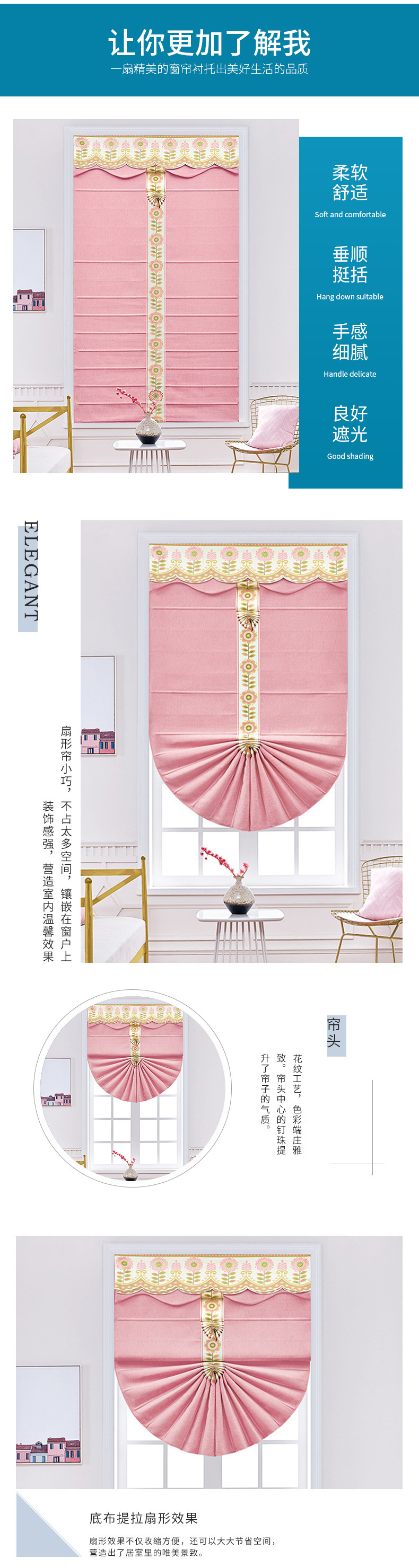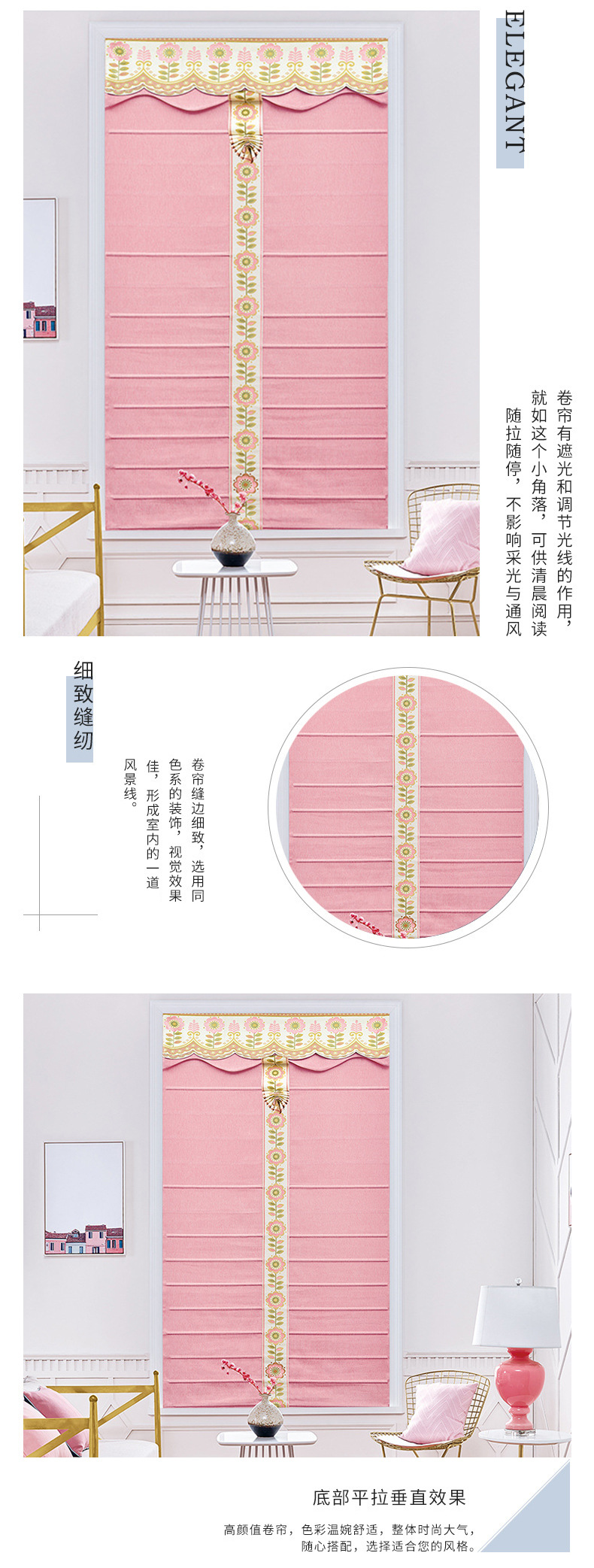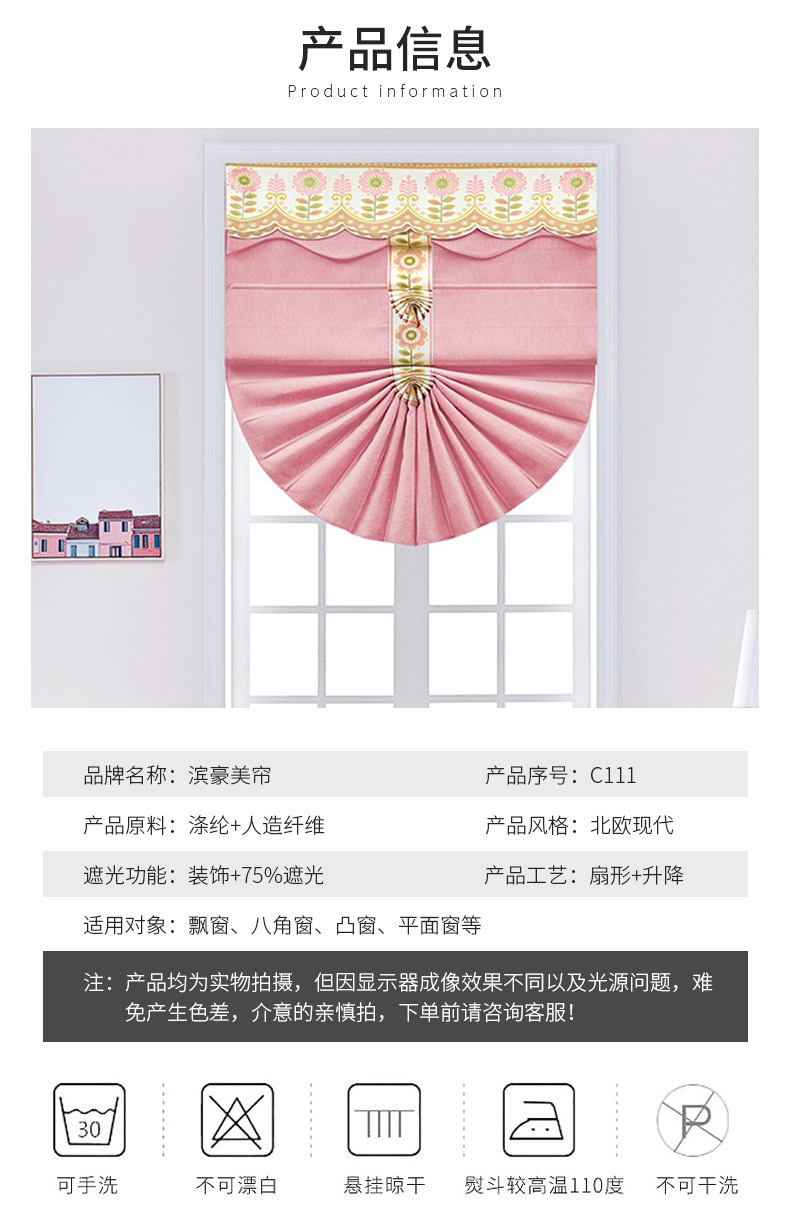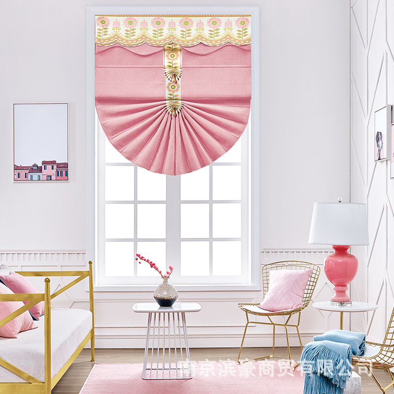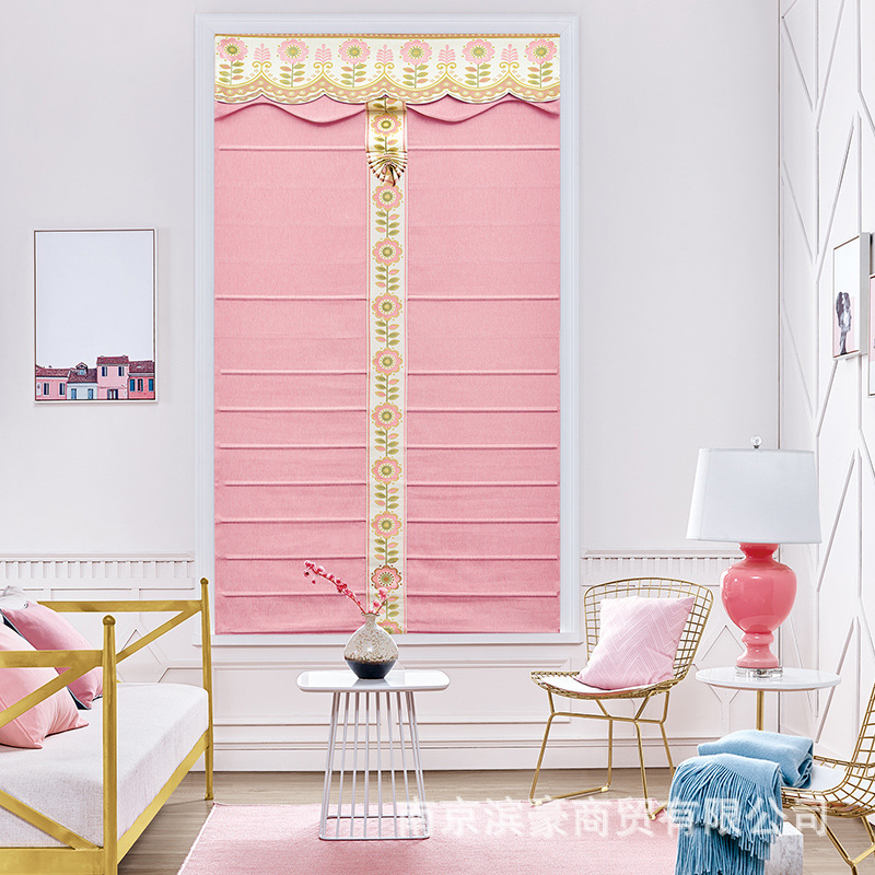 부채꼴 커튼, 창문 장식용 완제품, 핑크 스트라이프, 심플 모던, 리프팅 로마 커튼, 블라인드스토어 가기