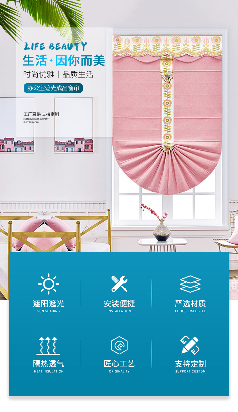 부채꼴 커튼, 창문 장식용 완제품, 핑크 스트라이프, 심플 모던, 리프팅 로마 커튼, 블라인드